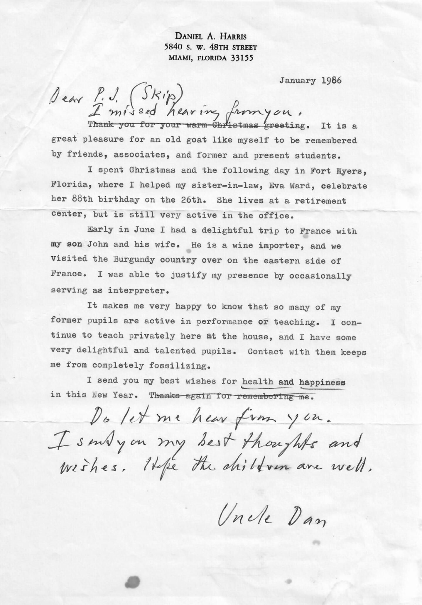AU Harris, Daniel Alfred - 1986-01-XX letter to Paul J. Harris Jr.Entry/Object ID