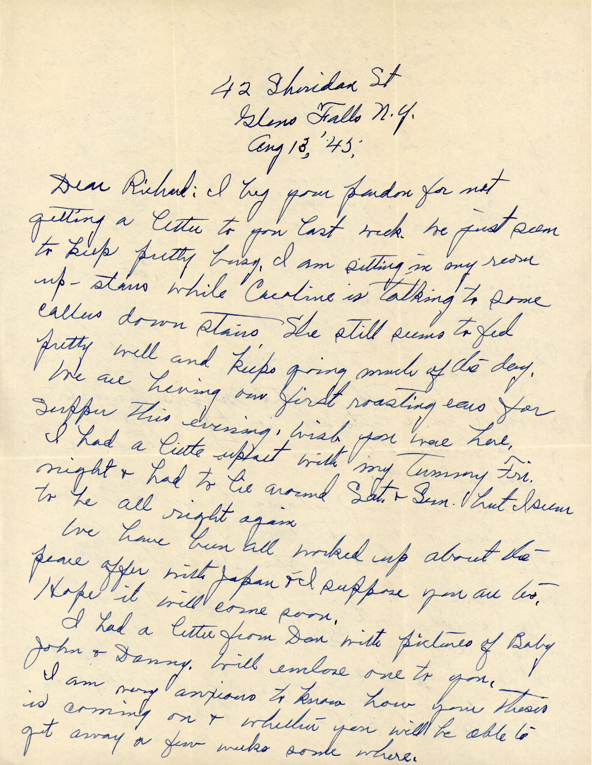 We have been all worked up about the peace offer with Japan & I suppose you are too. Hope it will come soon.