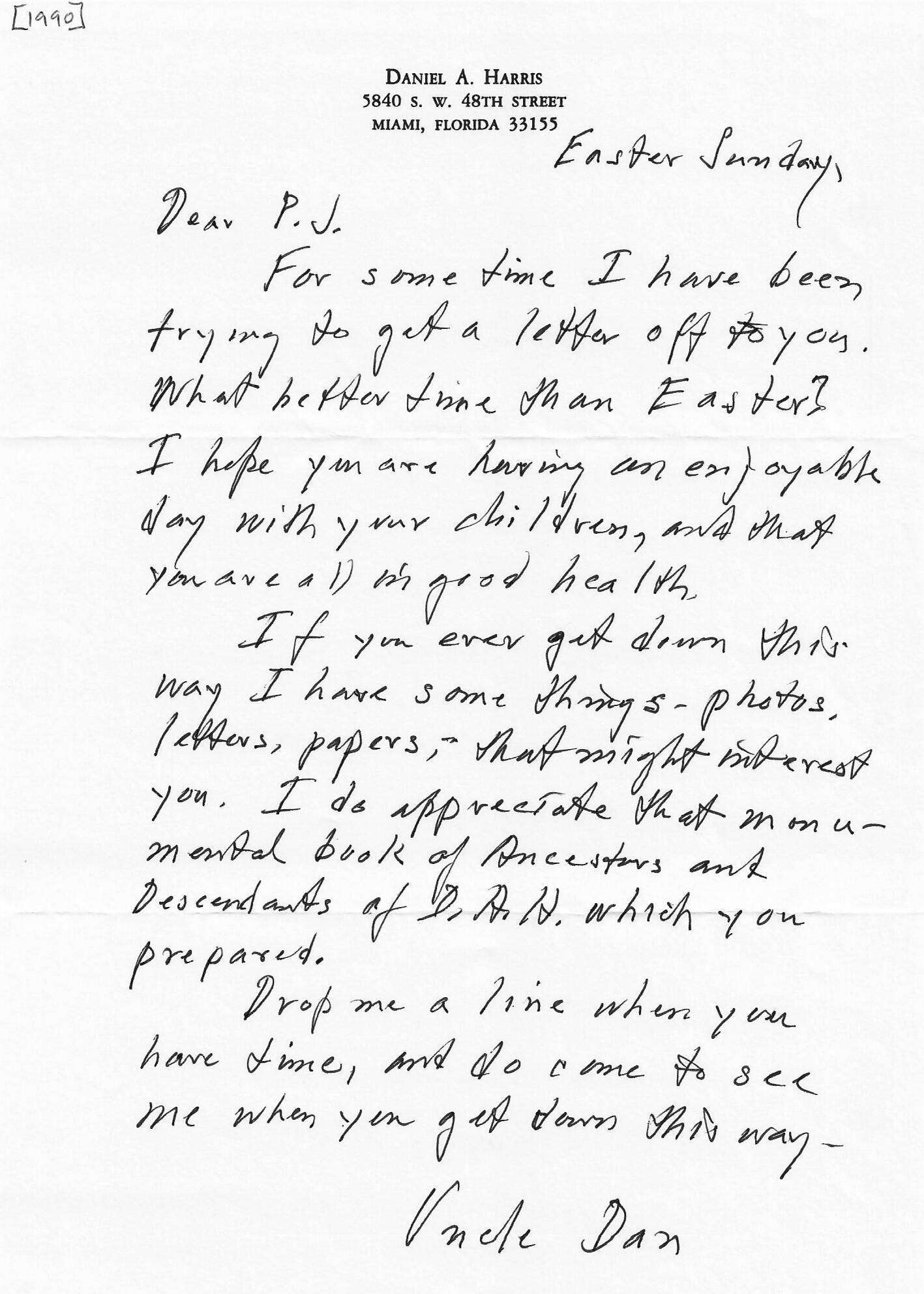 AU Harris, Daniel Alfred - 1990-04-15 letter to Paul J. Harris Jr.Entry/Object ID