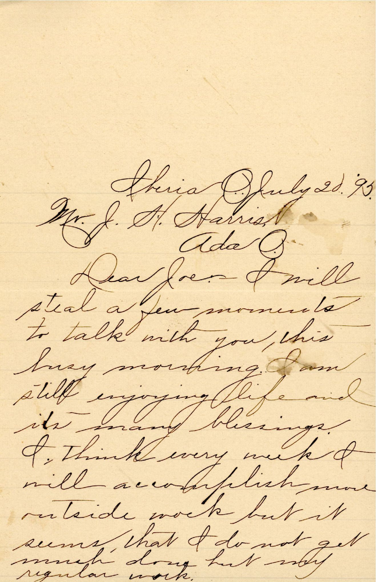 [Iberia, OH, to Mr. J. H. Harris, Ada, Ohio, Lock Box 28]
