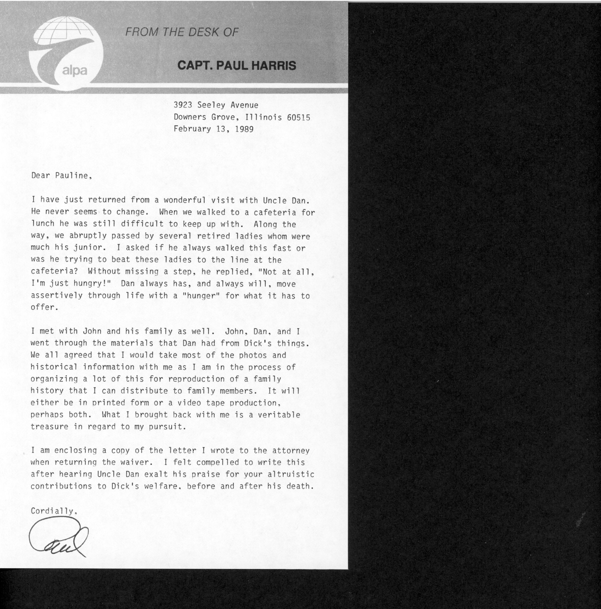 AU Harris, Paul Joseph Jr. - 1989-02-13 letter to Pauline BierleyEntry/Object ID