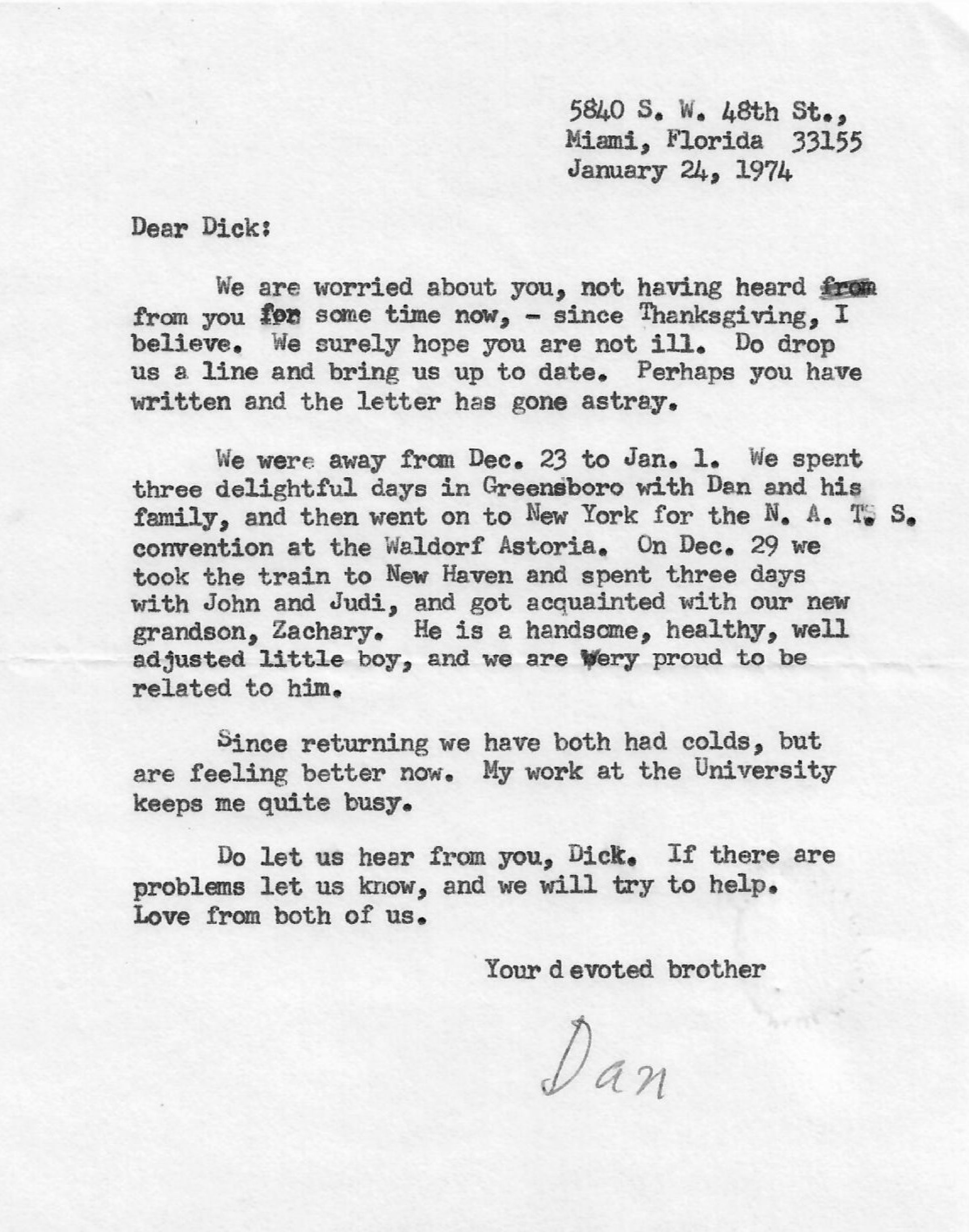 AU Harris, Daniel Alfred - 1974-01-24 letter to Richard Lambert HarrisEntry/Object ID