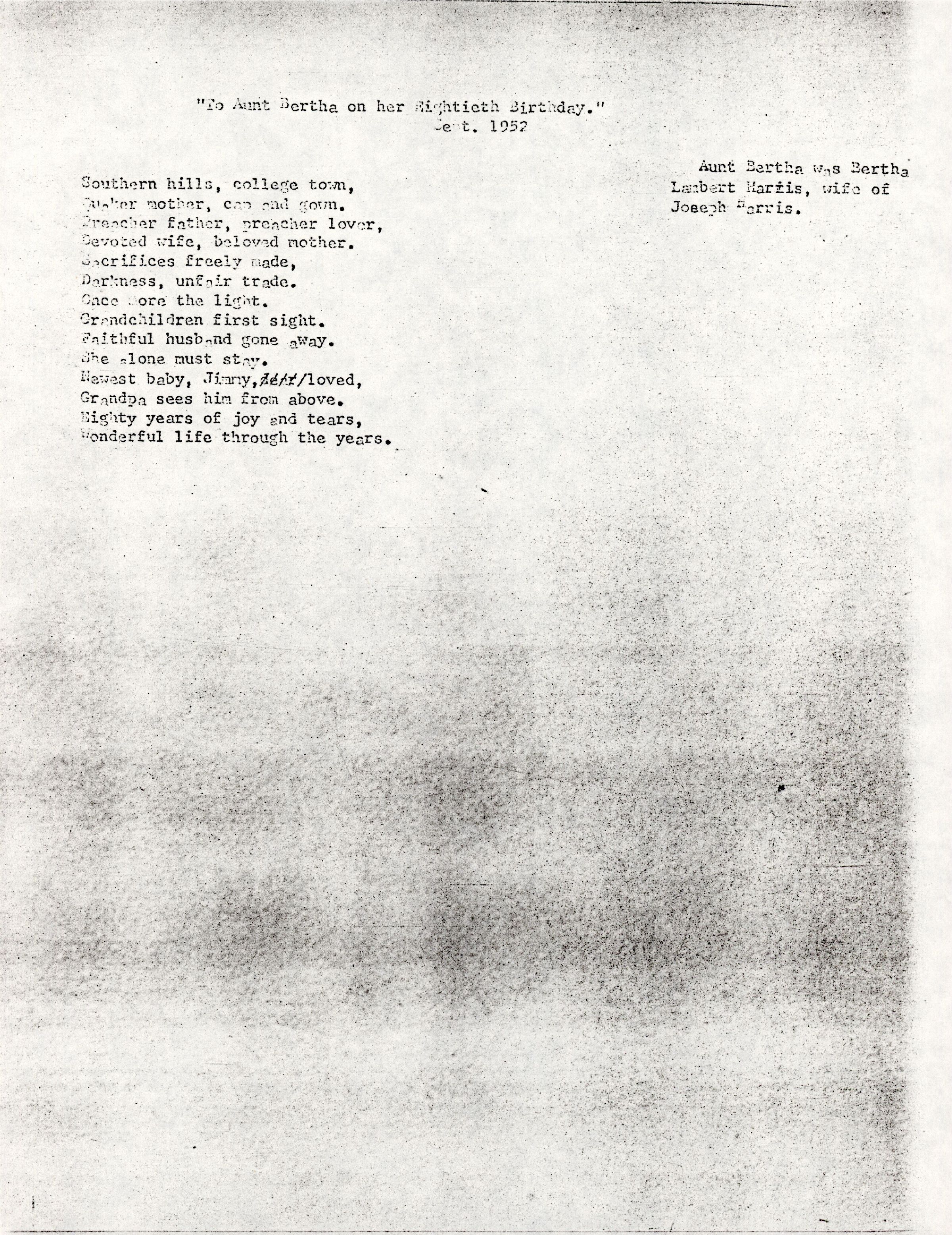 Aunt Bertha was Bertha Lambert Harris, wife of Joseph Harris.