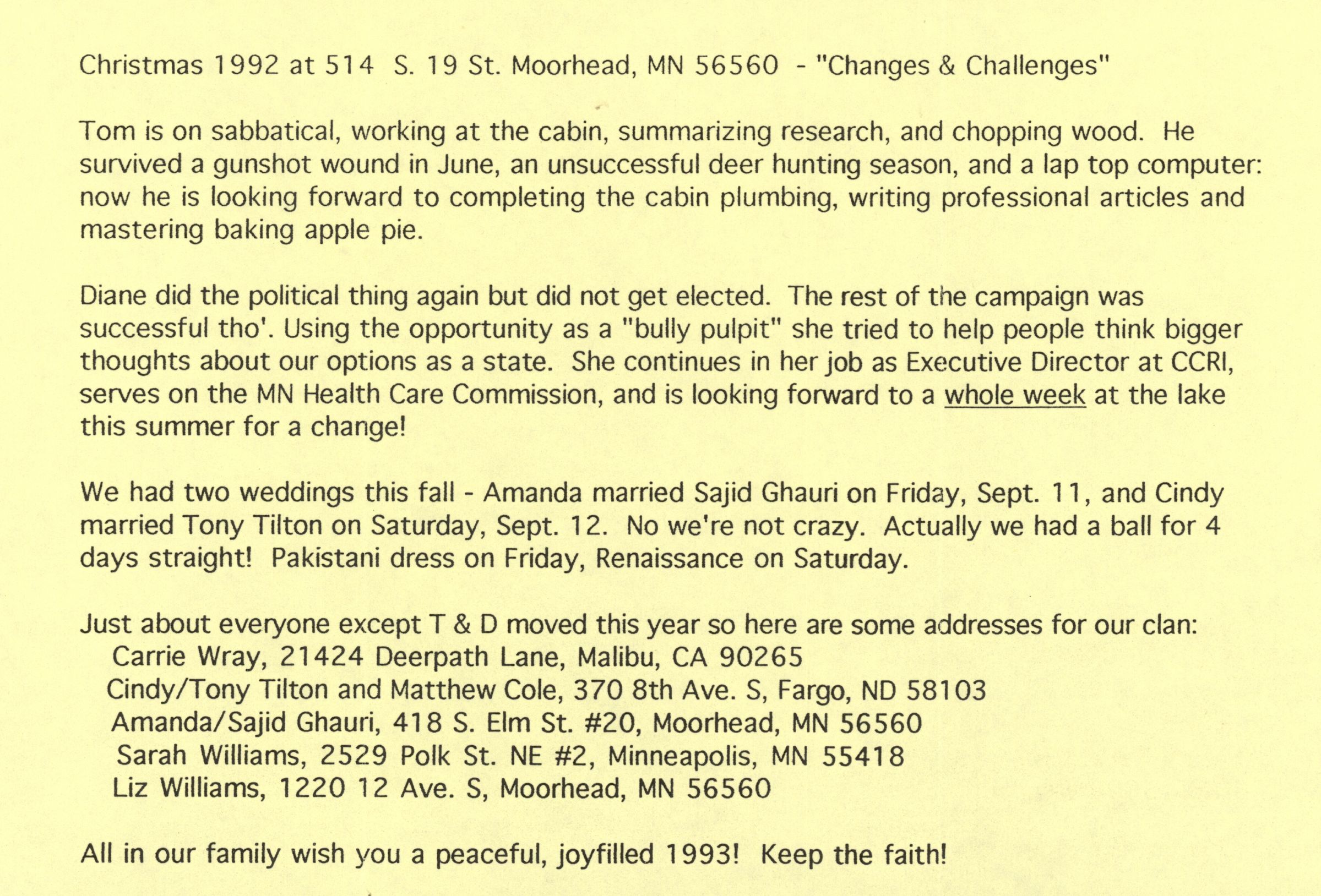 Christmas 1992 at 514 S. 19 St. Moorhead, MN 56560 - "Changes & Challenges"