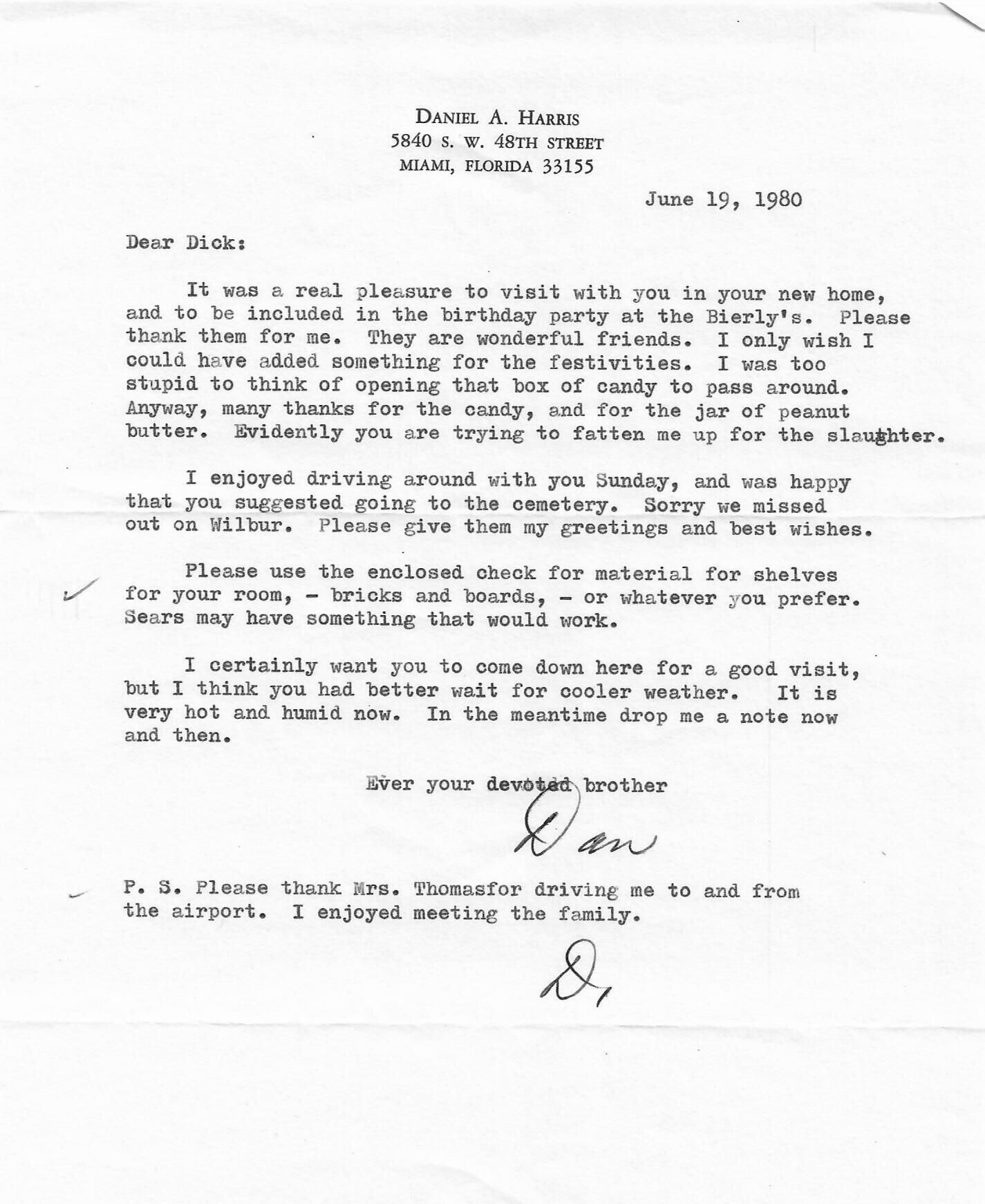 AU Harris, Daniel Alfred - 1980-06-19 letter to Richard Lambert HarrisEntry/Object ID