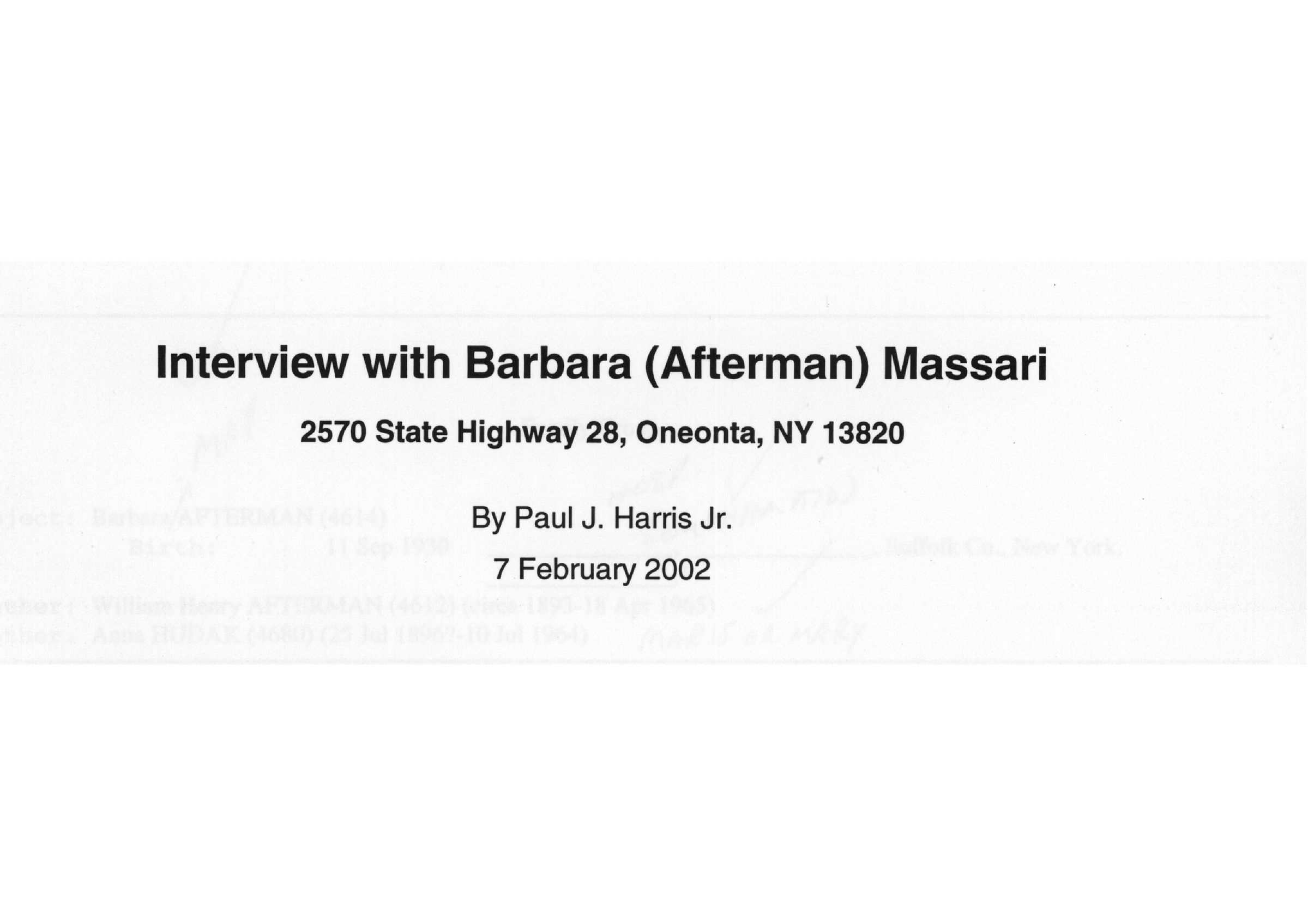 AU Afterman, Barbara May [Massari] - 2002-02-07 InterviewEntry/Object ID