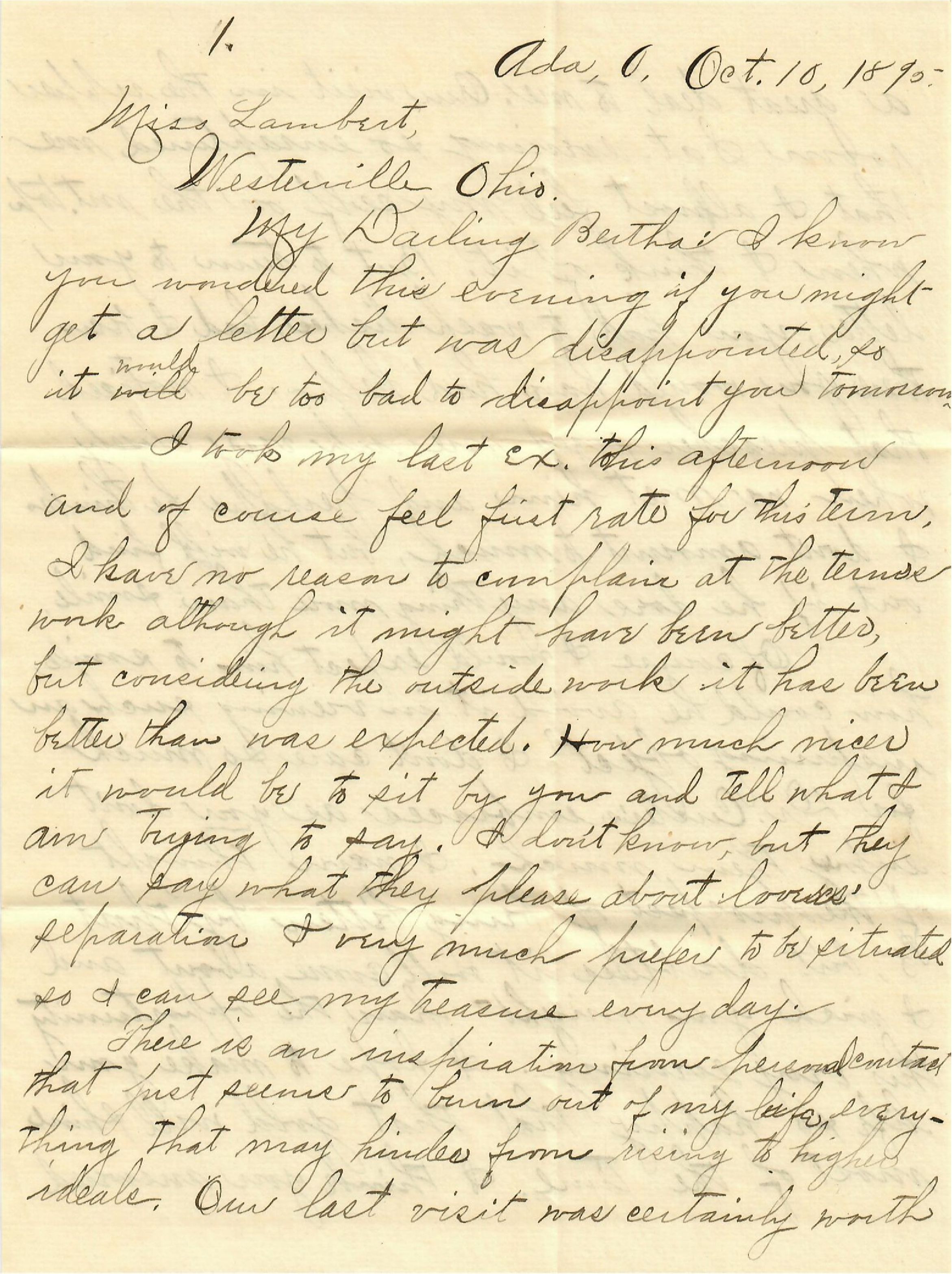 [Ada, OH, to Miss Bertha Lambert, Westerville, Ohio]