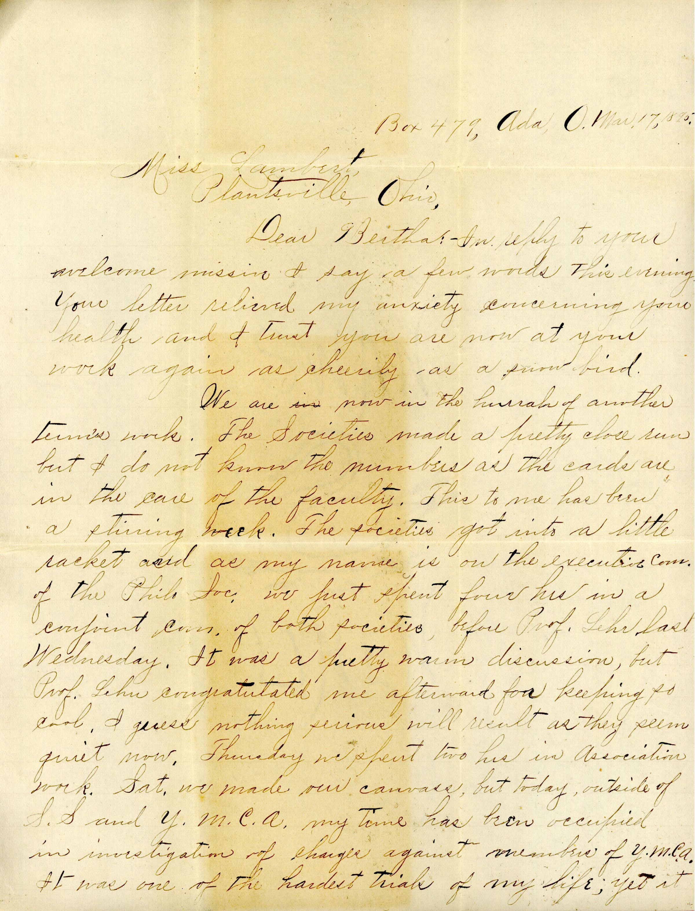 Box 479, Ada, O. Mar. 17, 1895.
