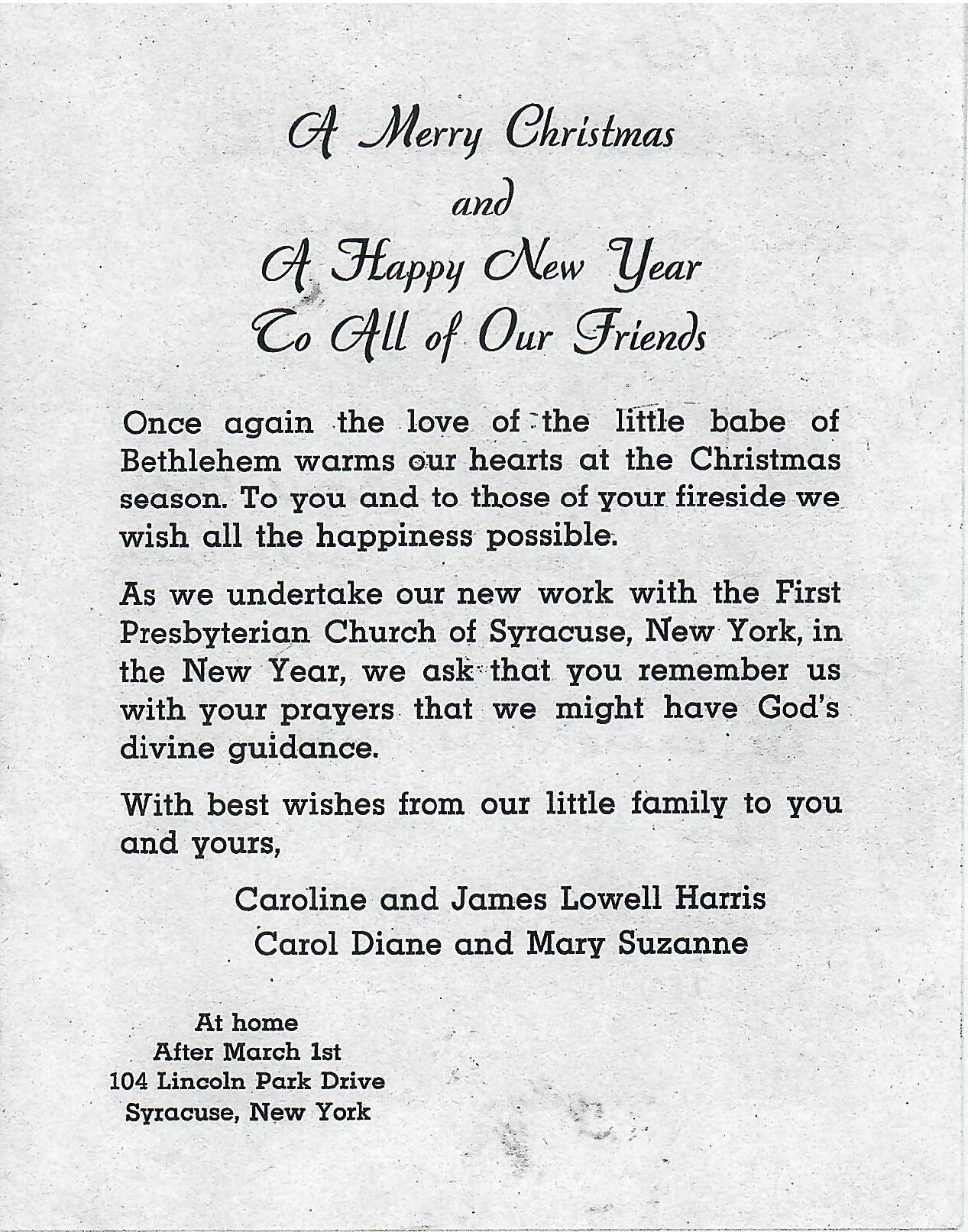 AU Harris, James Lowell - 1948-01-03 Christmas Card to Patricia June HarrisEntry/Object ID