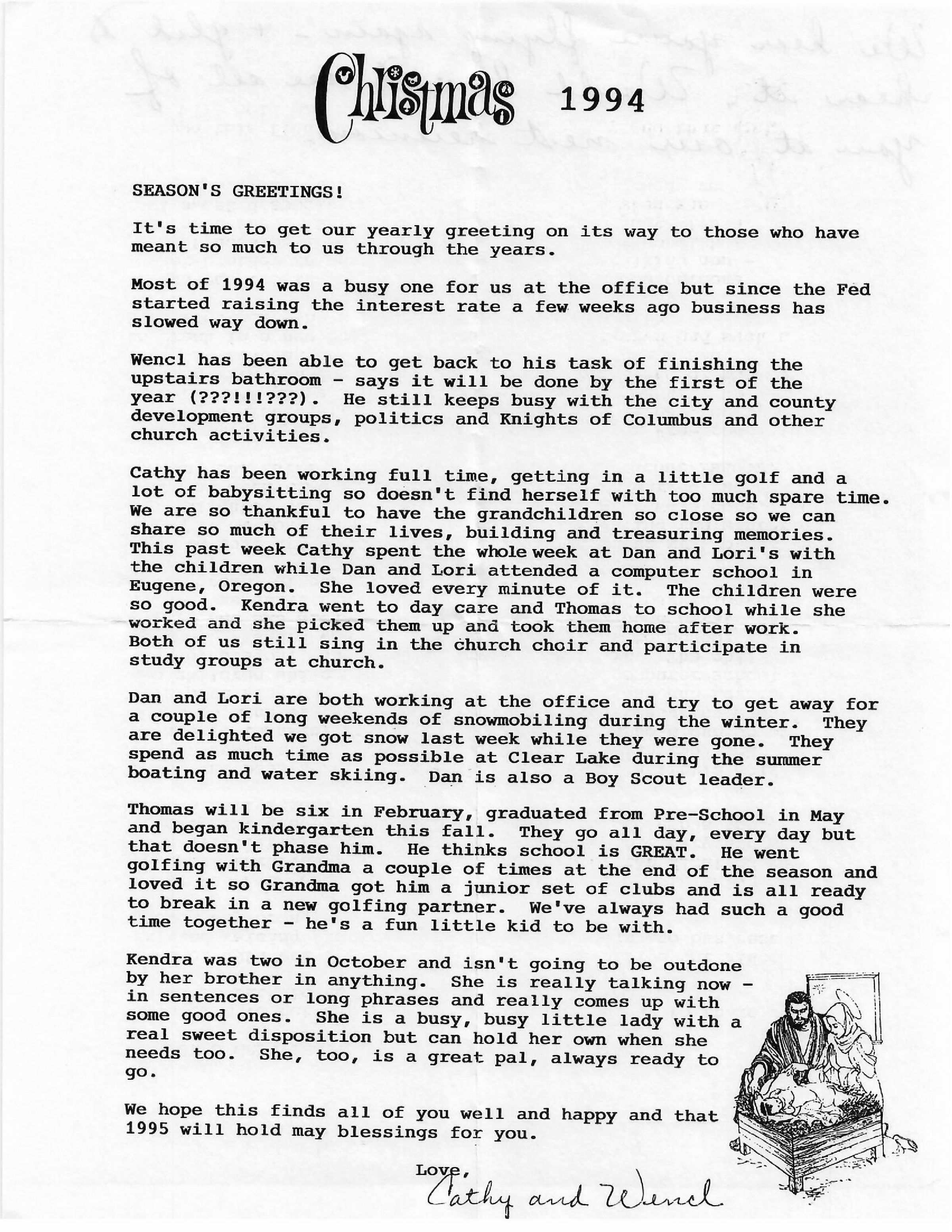 We hope this finds all of you well and happy and that 1995 will hold many blessings for you.