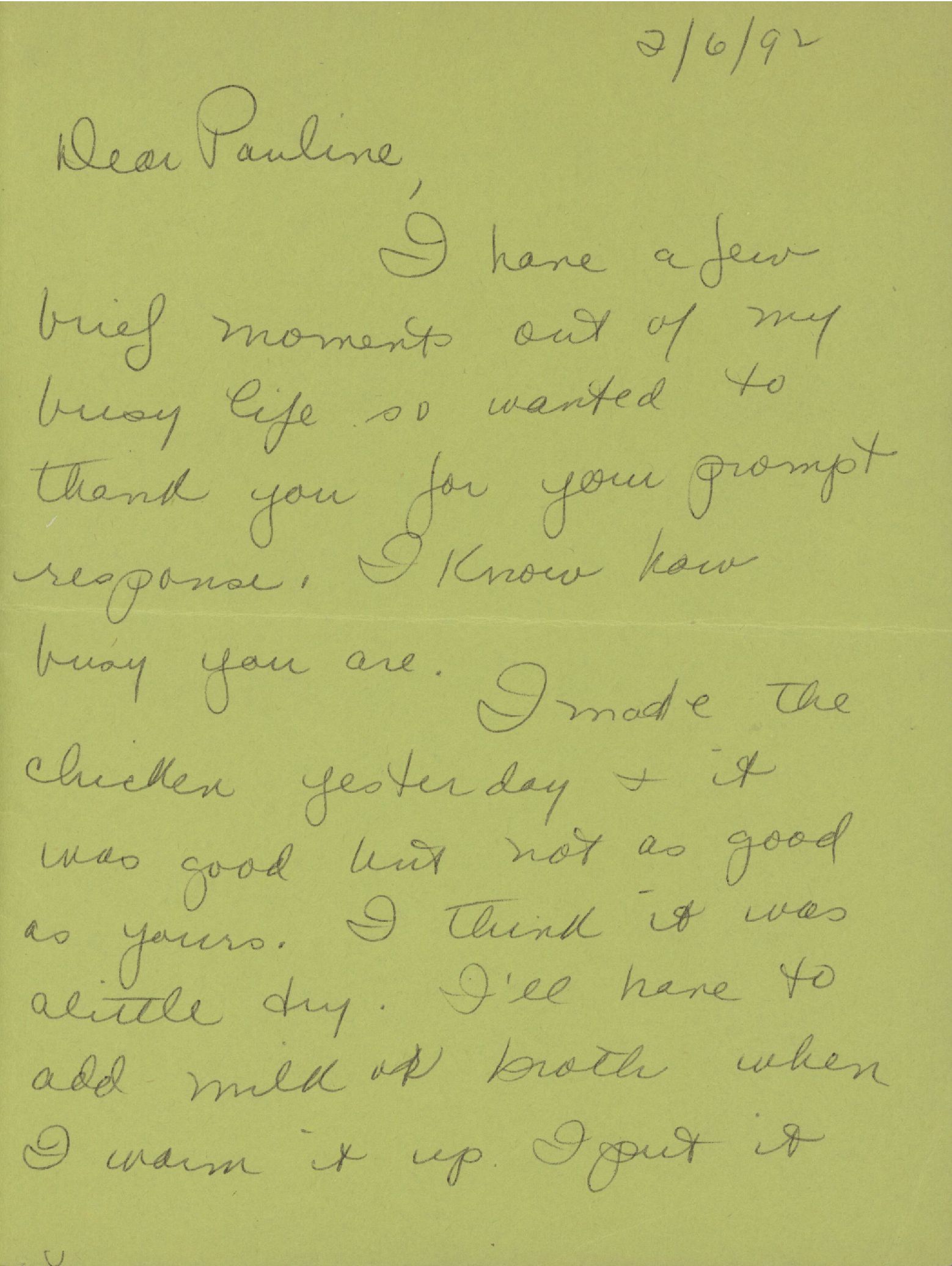 Dear Pauline,