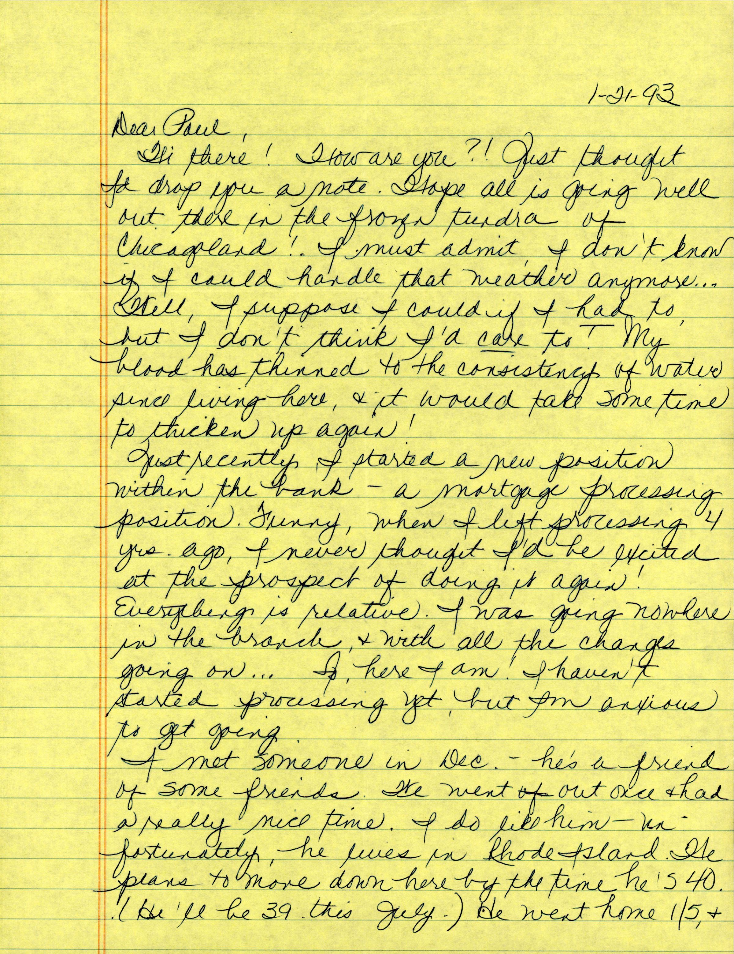 AU O'Connor, Patricia 'Patti' Ann - 1993-01-21 letter to Paul J. Harris Jr.Entry/Object ID