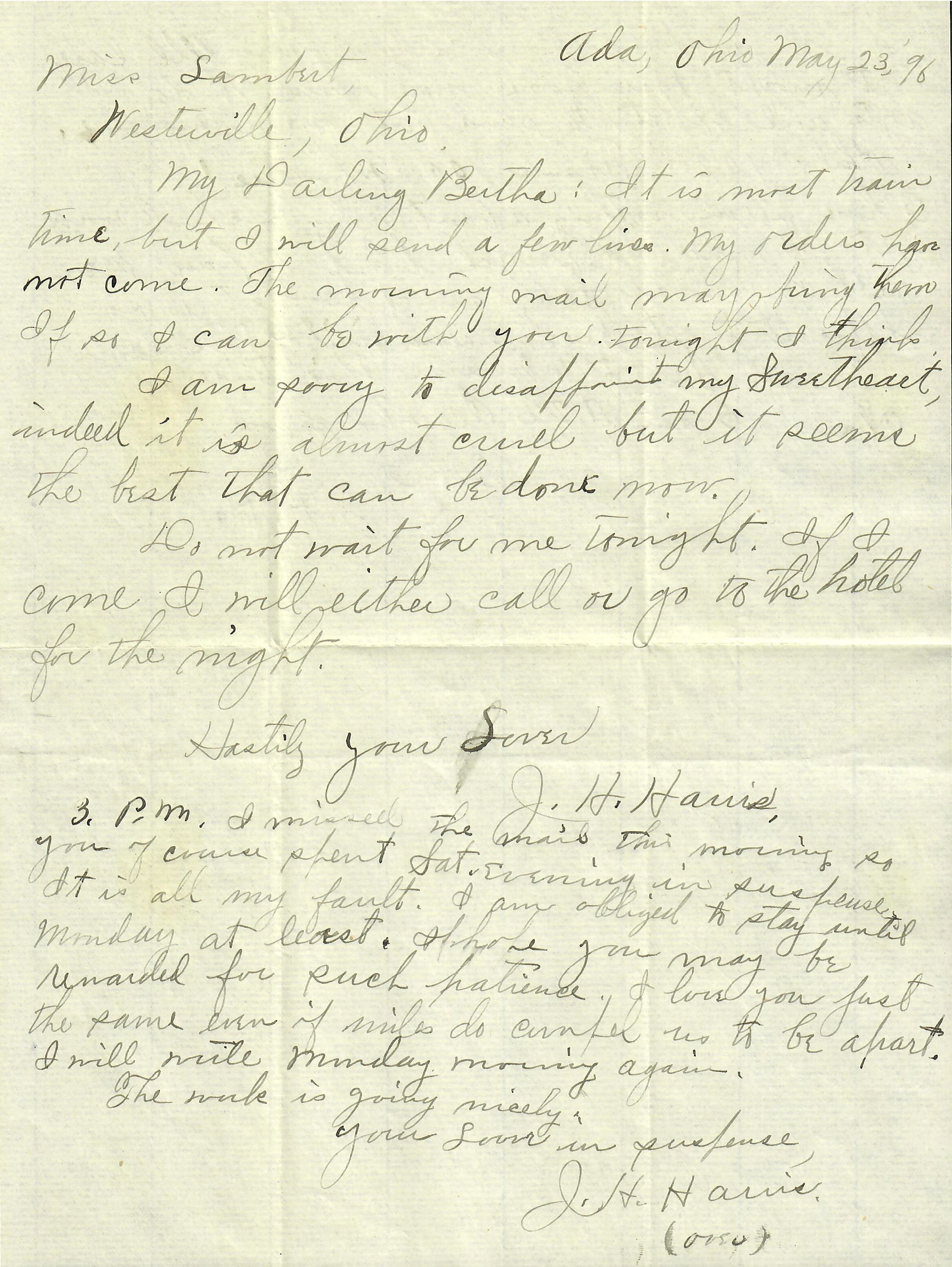 AU Harris, Joseph Hastings - 1896-05-23 letter to Bertha Elizabeth LambertEntry/Object ID