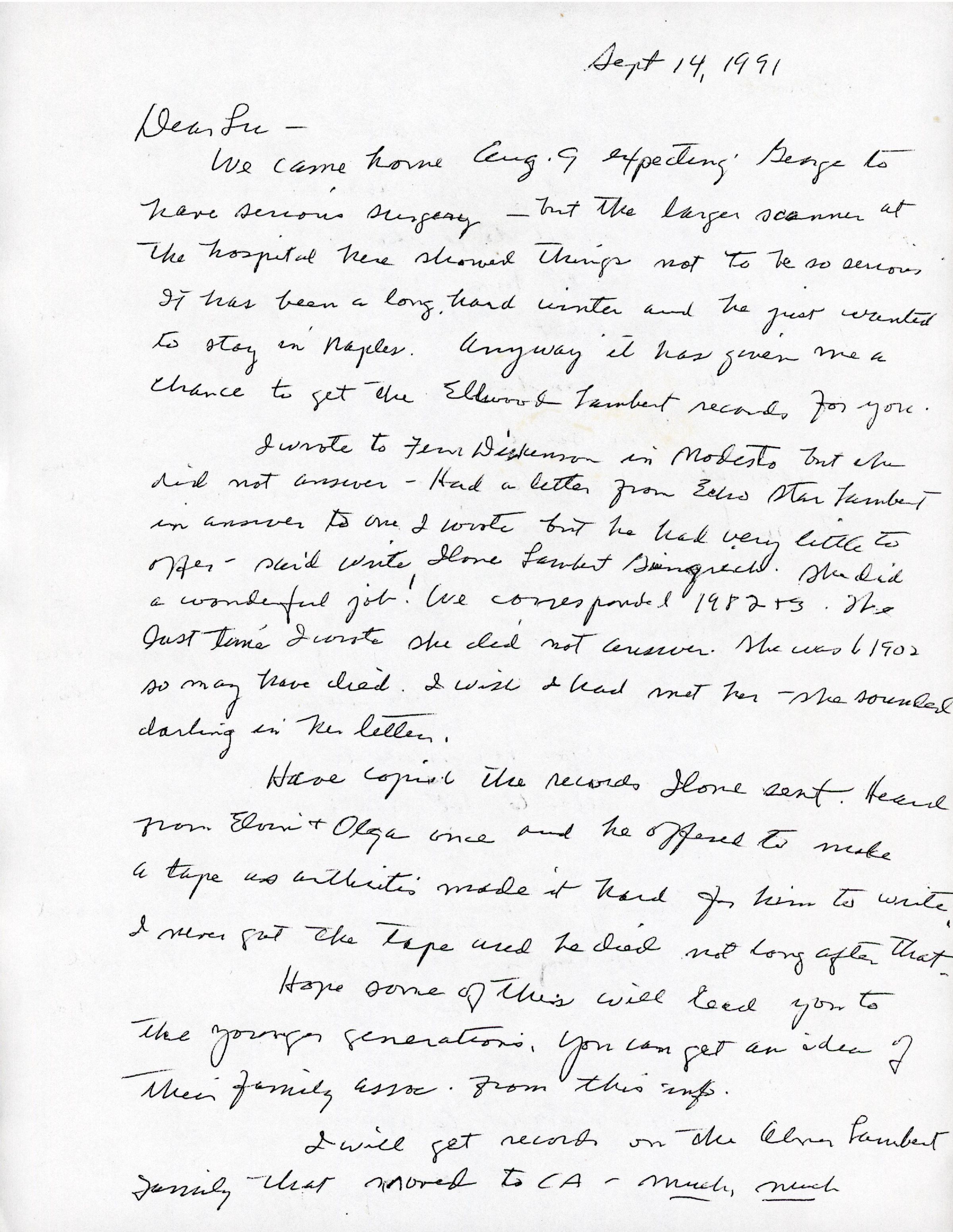 AU Lambert, Mary Elizabeth 'Bette' [Knapp] - 1991-09-14 letter to Luella Mae (Lambert) WilliamsEntry/Object ID