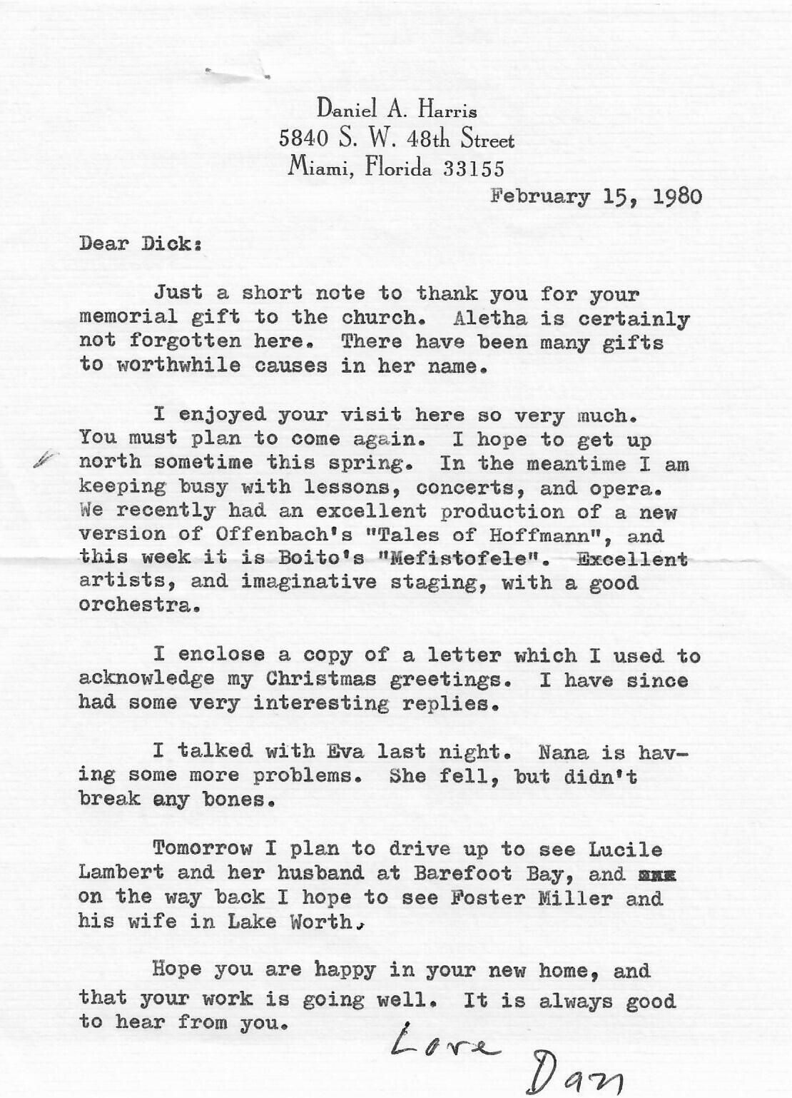 AU Harris, Daniel Alfred - 1980-02-15 letter to Richard Lambert HarrisEntry/Object ID