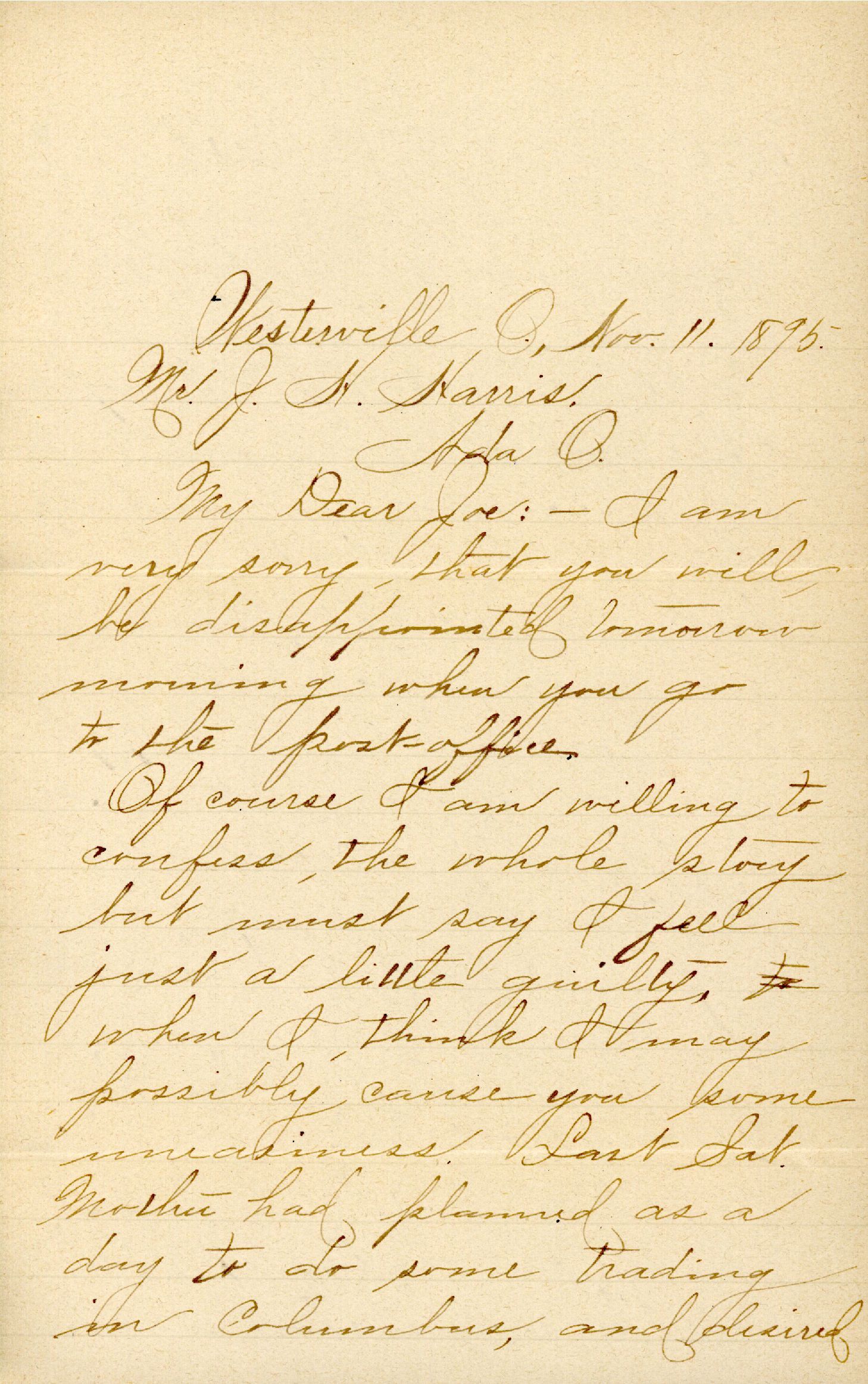 [Westerville, OH, to Mr. J. H. Harris, Ada, Ohio]