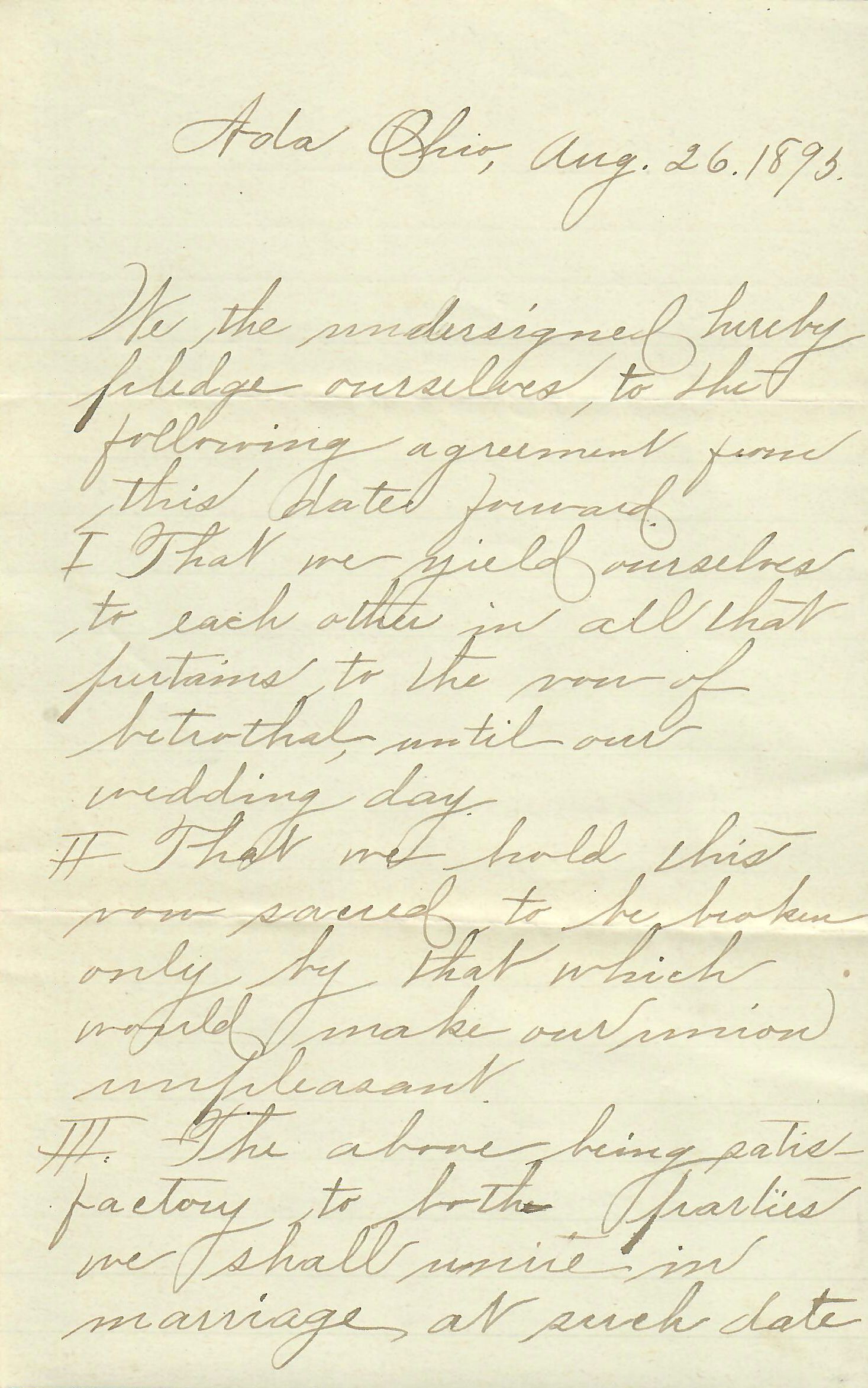 III. The above being satisfactory to both parties we shall unite in marriage at such date as shall be agreed upon by both parties.