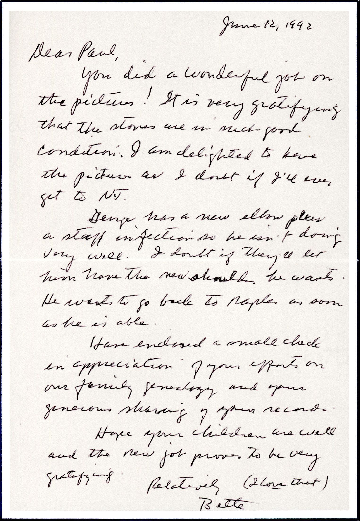 AU Lambert, Mary Elizabeth 'Bette' [Knapp] - 1992-06-12 letter to Paul J. Harris Jr.Entry/Object ID