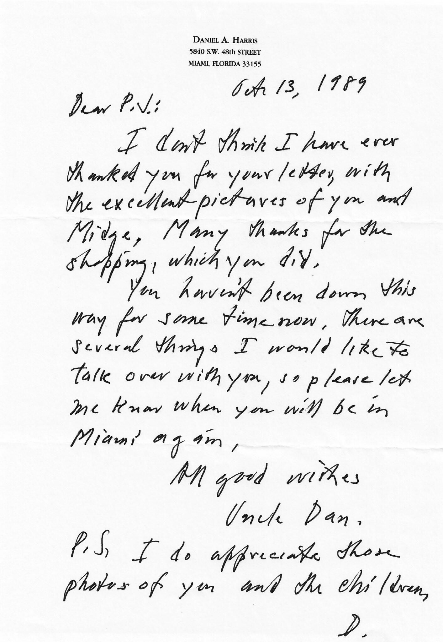 AU Harris, Daniel Alfred - 1989-10-13 letter to Paul J. Harris Jr.Entry/Object ID
