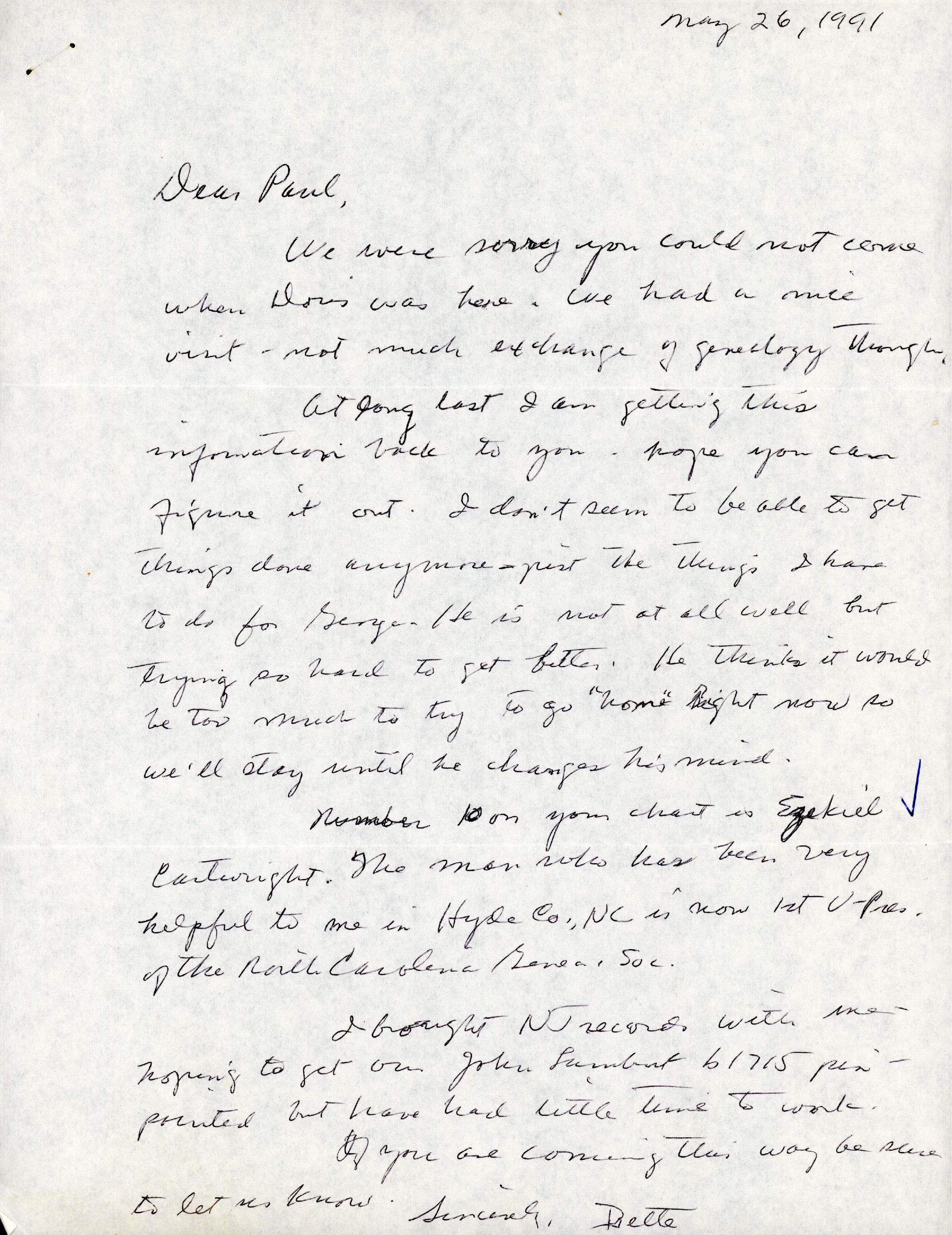 AU Lambert, Mary Elizabeth 'Bette' [Knapp] - 1991-05-26 letter to Paul J. Harris Jr.Entry/Object ID