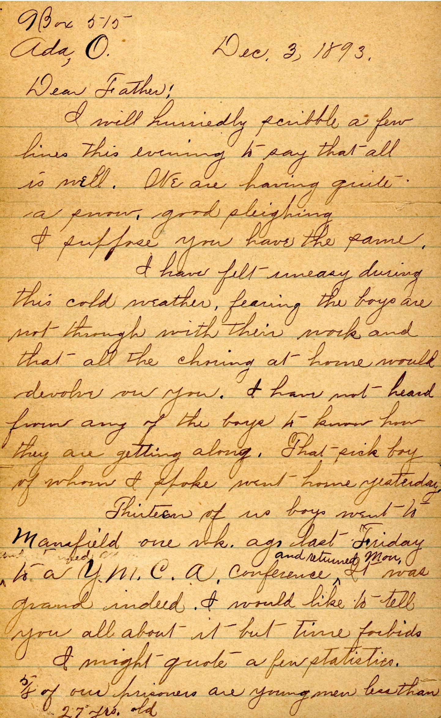 Letter from Joseph Hastings Harris (Ada, Ohio) to John Work Harris (Sharpsburg, Ohio), 3 December 1893