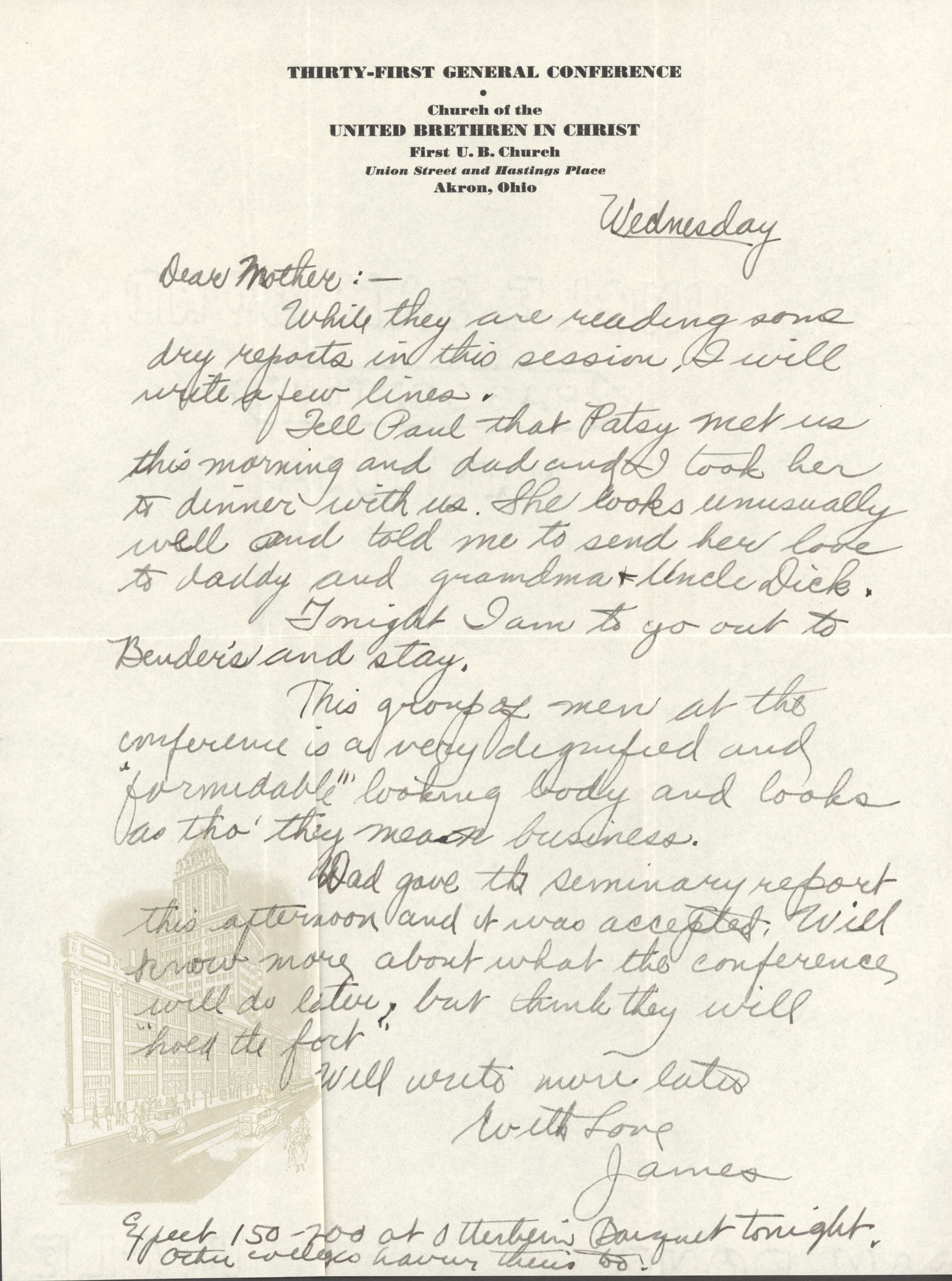 Tell Paul that Patsy met us this morning and dad and I took her to dinner with us. She looks unusually well and told me to send her love to daddy and grandma & Uncle Dick.
