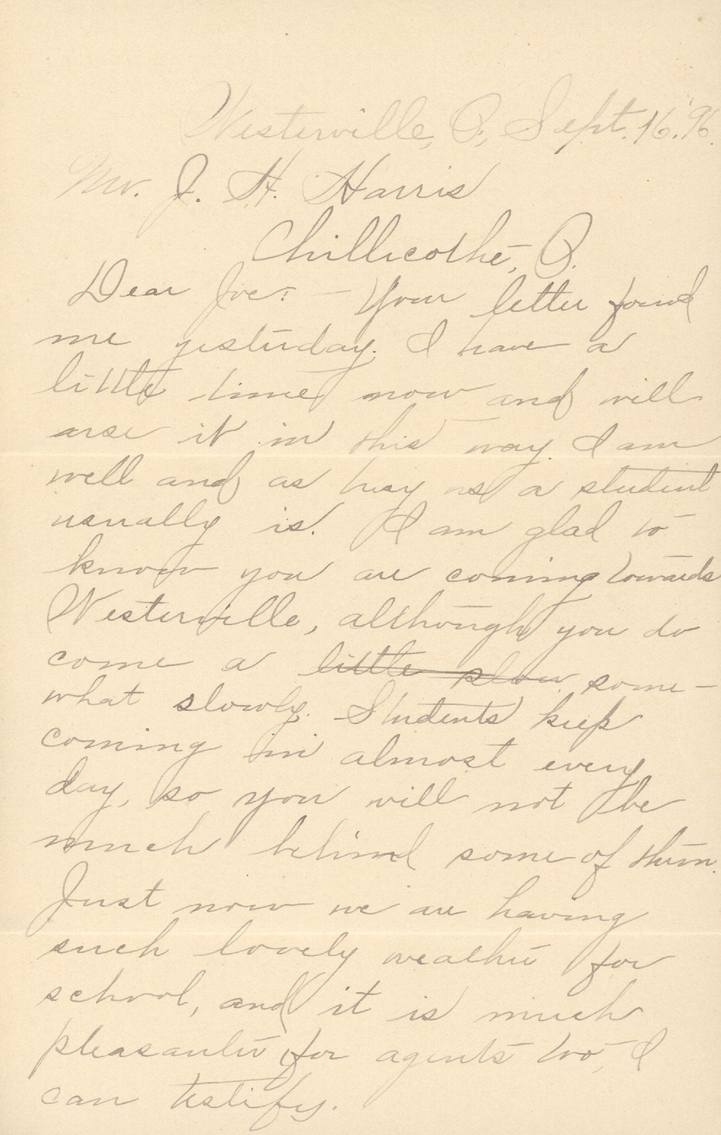 [Box 344, Westerville, OH, to Mr. J. H. Harris, Chillicothe, Ohio]