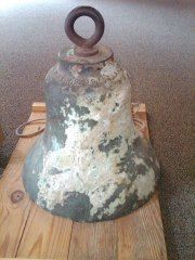 Marked with Williams and Sons, Jersey City, NJ 1915 USLHS. This stands for United States Lighthouse Service. Williams and Sons was the company contracted with the USLHS at the time to make these bells. It has no clapper inside. It is believed to be a fogbell at an offshore buoy because of its size. On shore fogbells were about double the diameter and height of this one.Collection