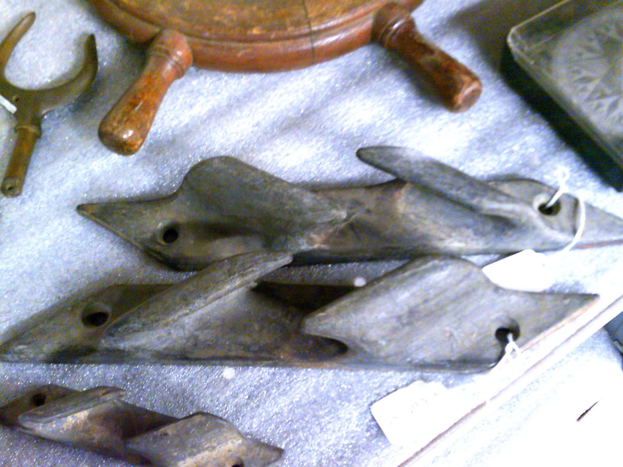 Two chock of heavy metal. 137 a and b. Used to keep line away from boat.