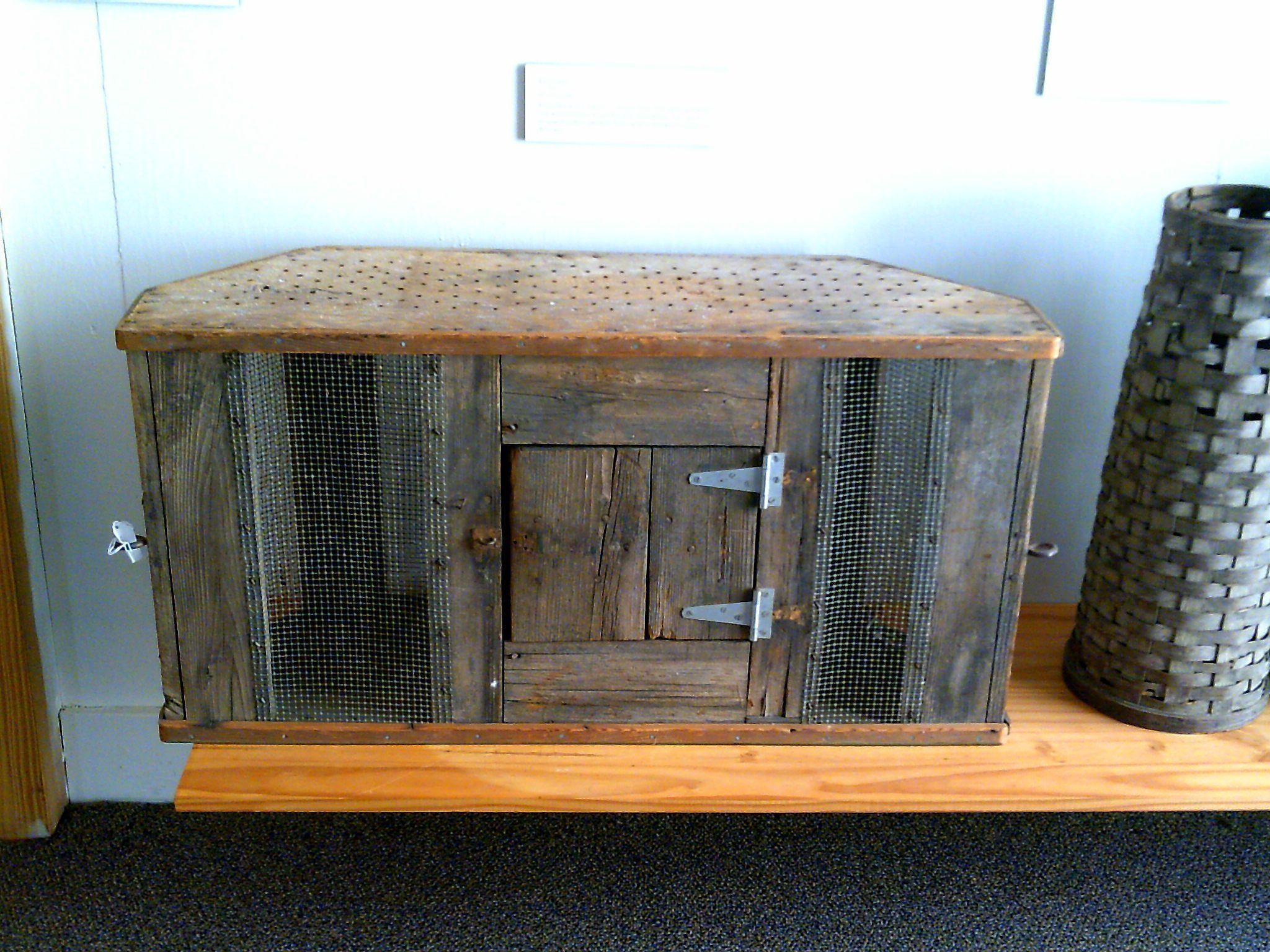 Door on the front had a lock to hold it shut. On the sides are holes in the wood-- allowed the eels to live in the water while being submerged.Collection