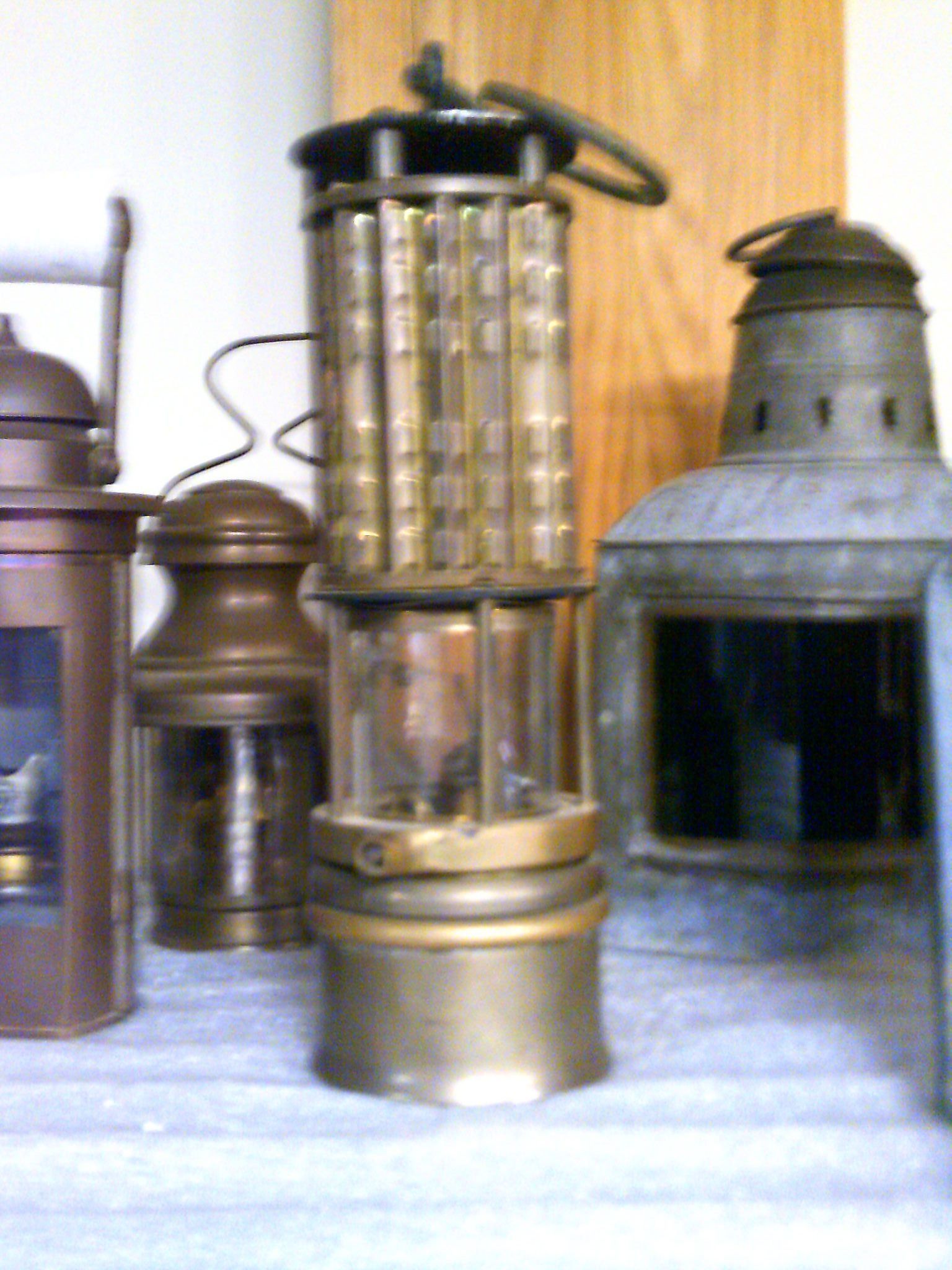 sticker on the outside "Flame Safty Lamp" (removed, may leave stickiness and took alittle paint and rust off)