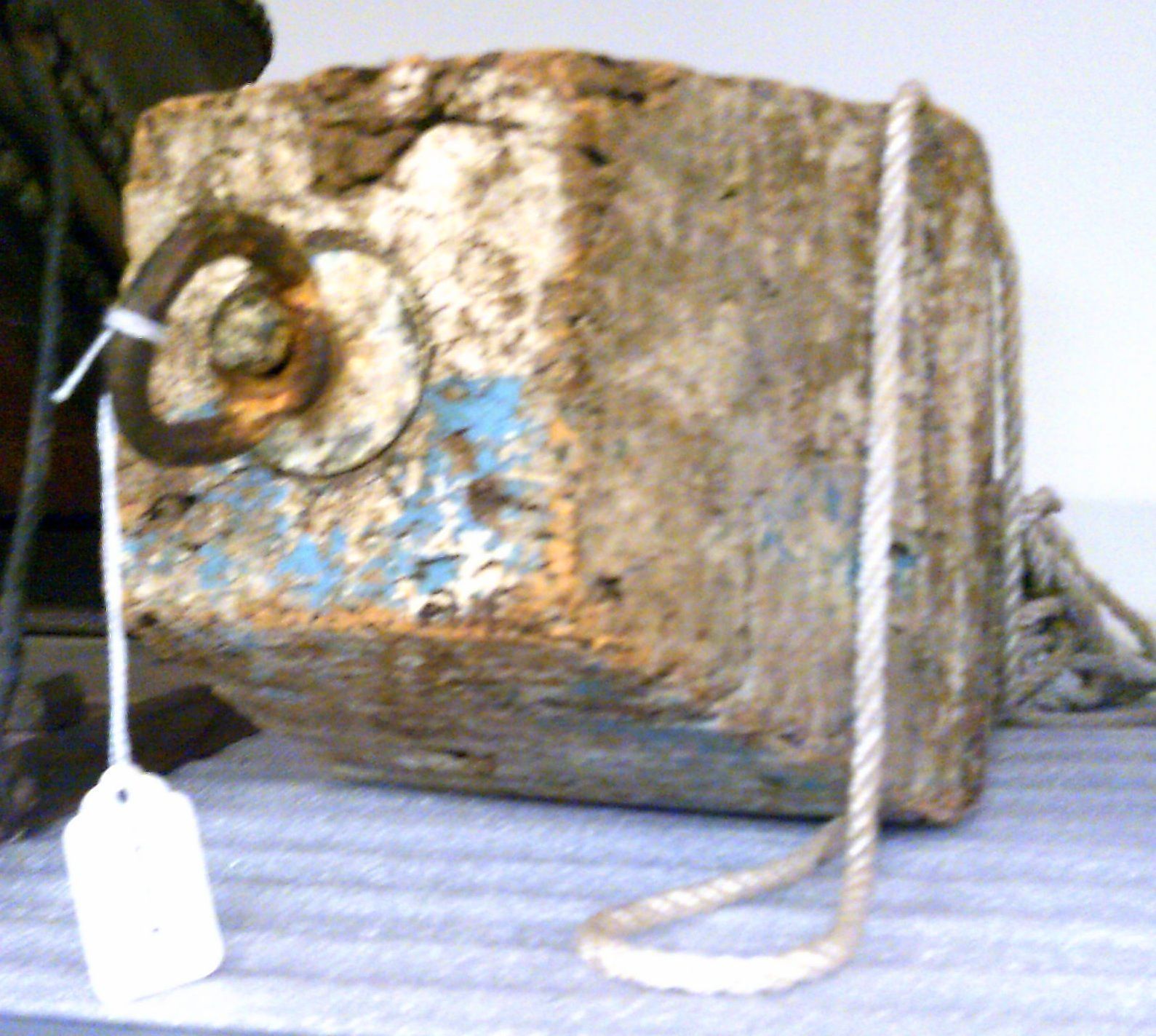 Has a metal ring on both sides on it-- probably to attach to another float or a netCollection