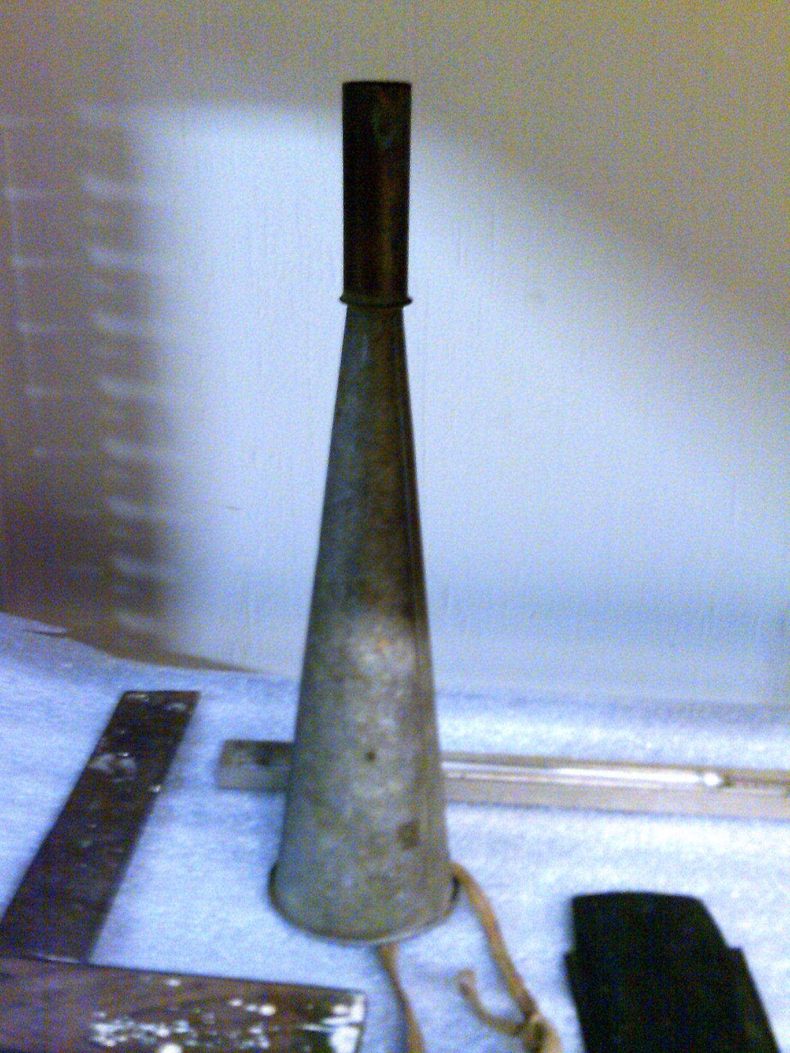 Mouth foghorn. To use one would place their mouth on the small end and blow. The foghorn was a type of signal used on ships. Diffrent amounts of blows meant diffrent things to another ship.Collection