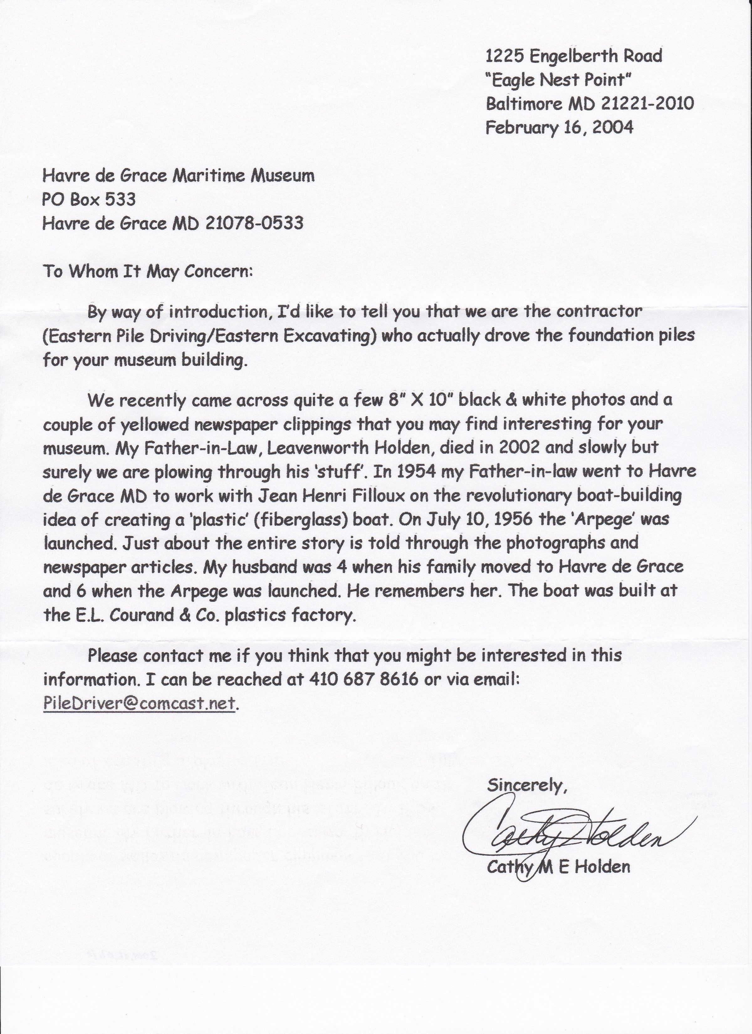 Letter to Brenda G. from Cathy Holden