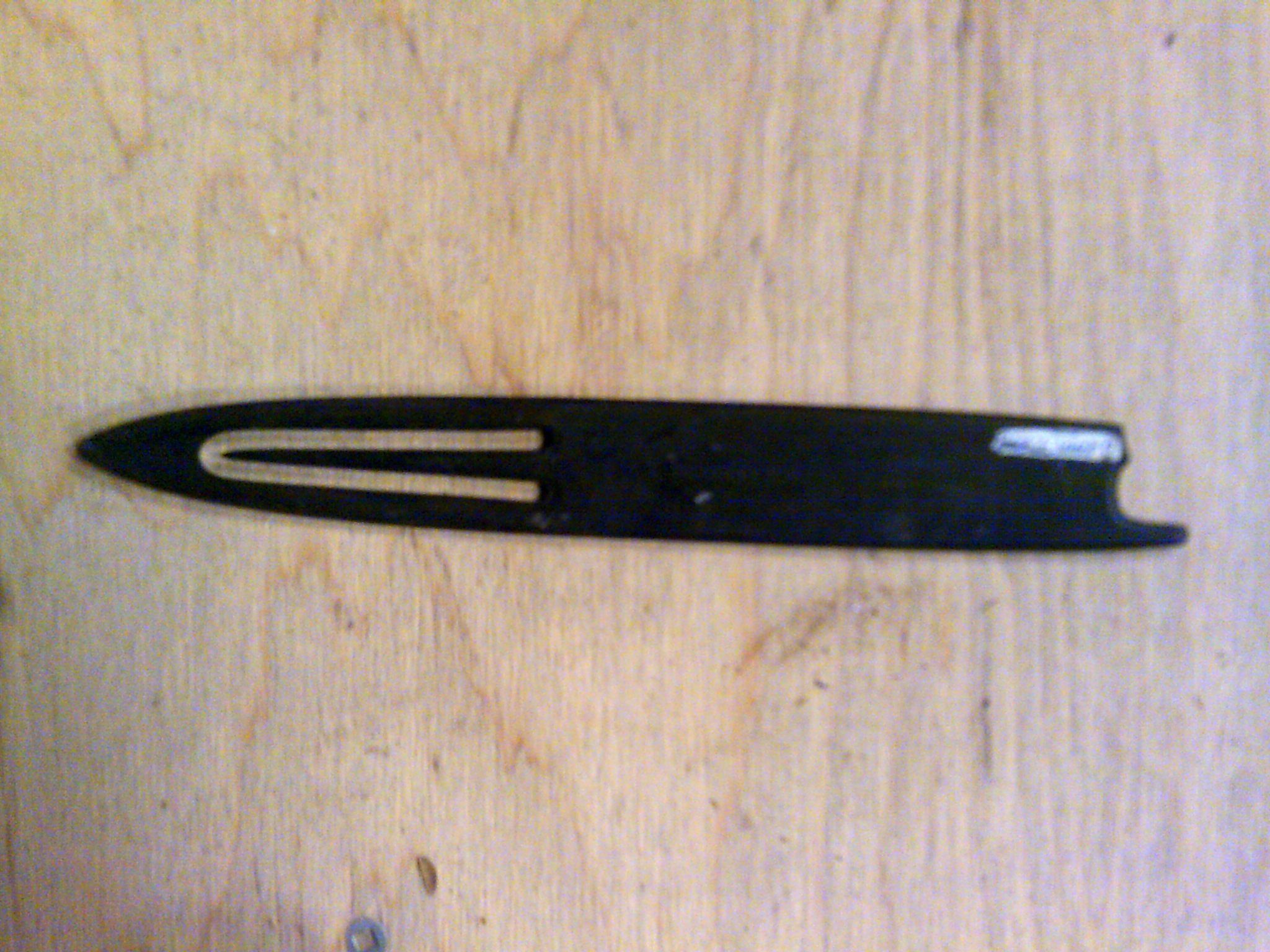 Shaped like a rocket with an oval cut out towards the top