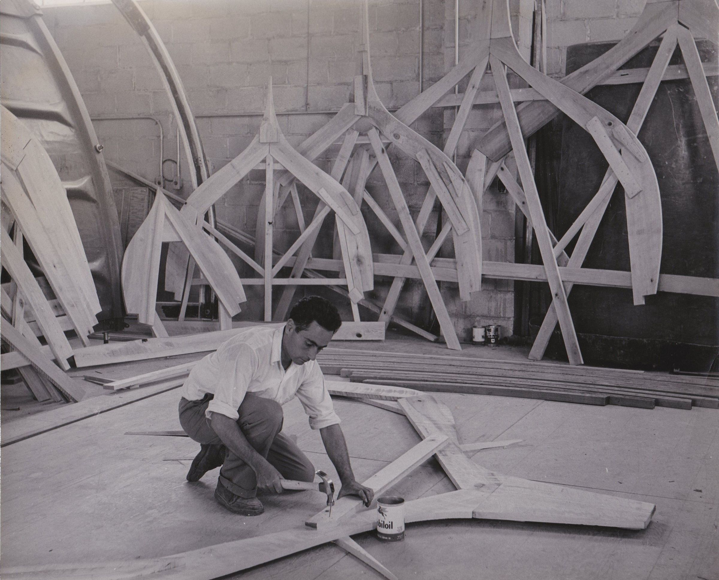 in the image he has a can of Mobil oil and a hammer in hand with a nail in the frame (hammering)Collection