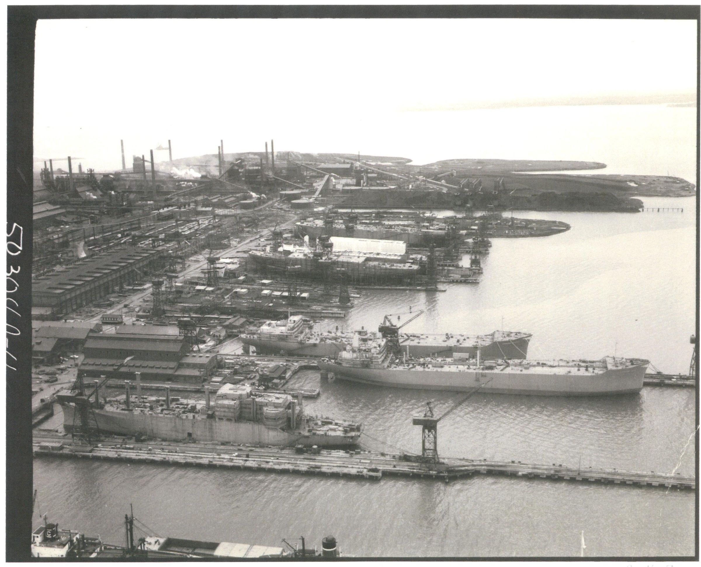 B & W Photograph of "Bethlehem Steel Sparrows Point Shipyard Spring 1968." Image is a reproduction from a negative. Number is cut off on side but appears to be 50304-Collection