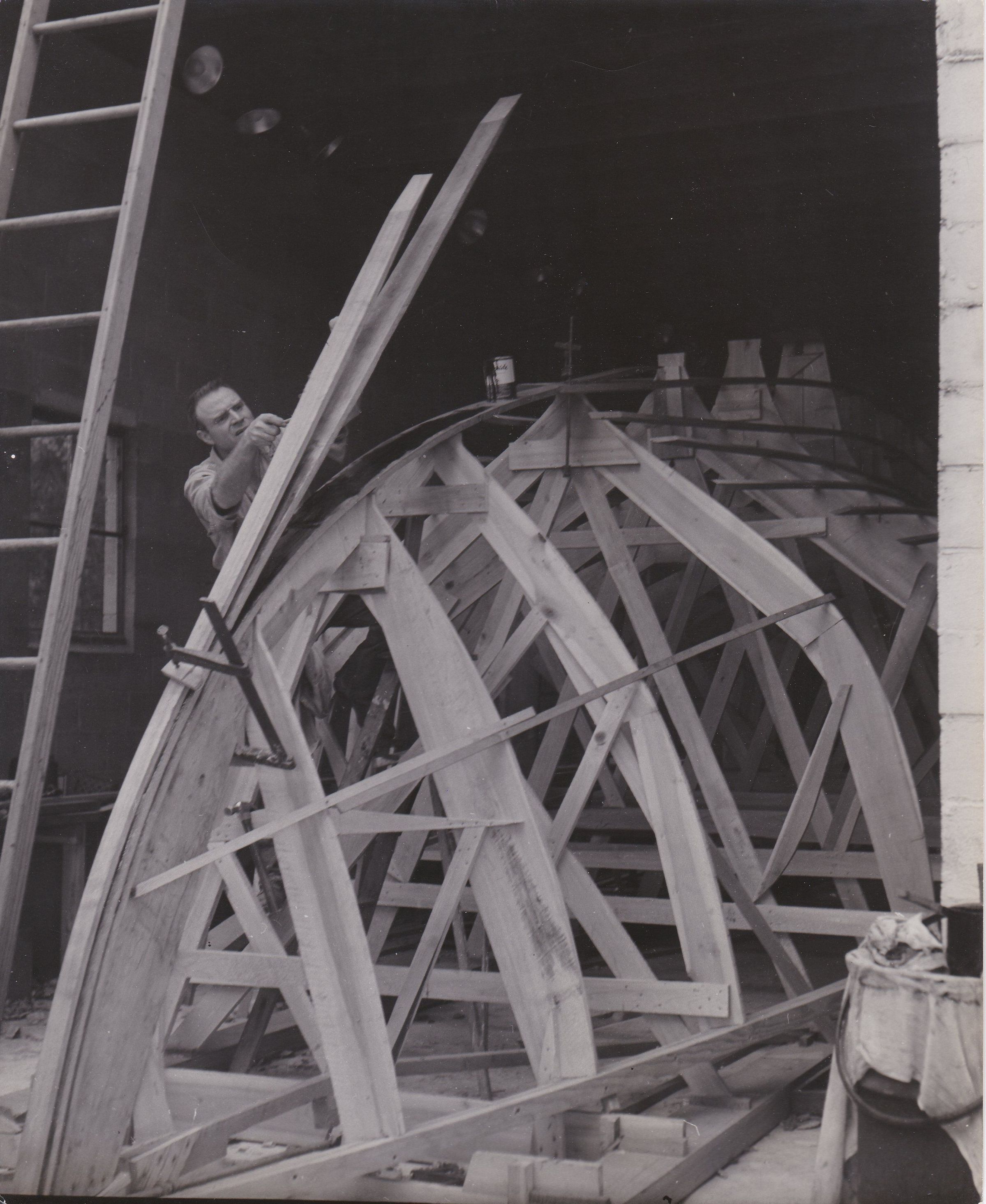 Leavenworth Holden working on bending the wood for the frameCollection