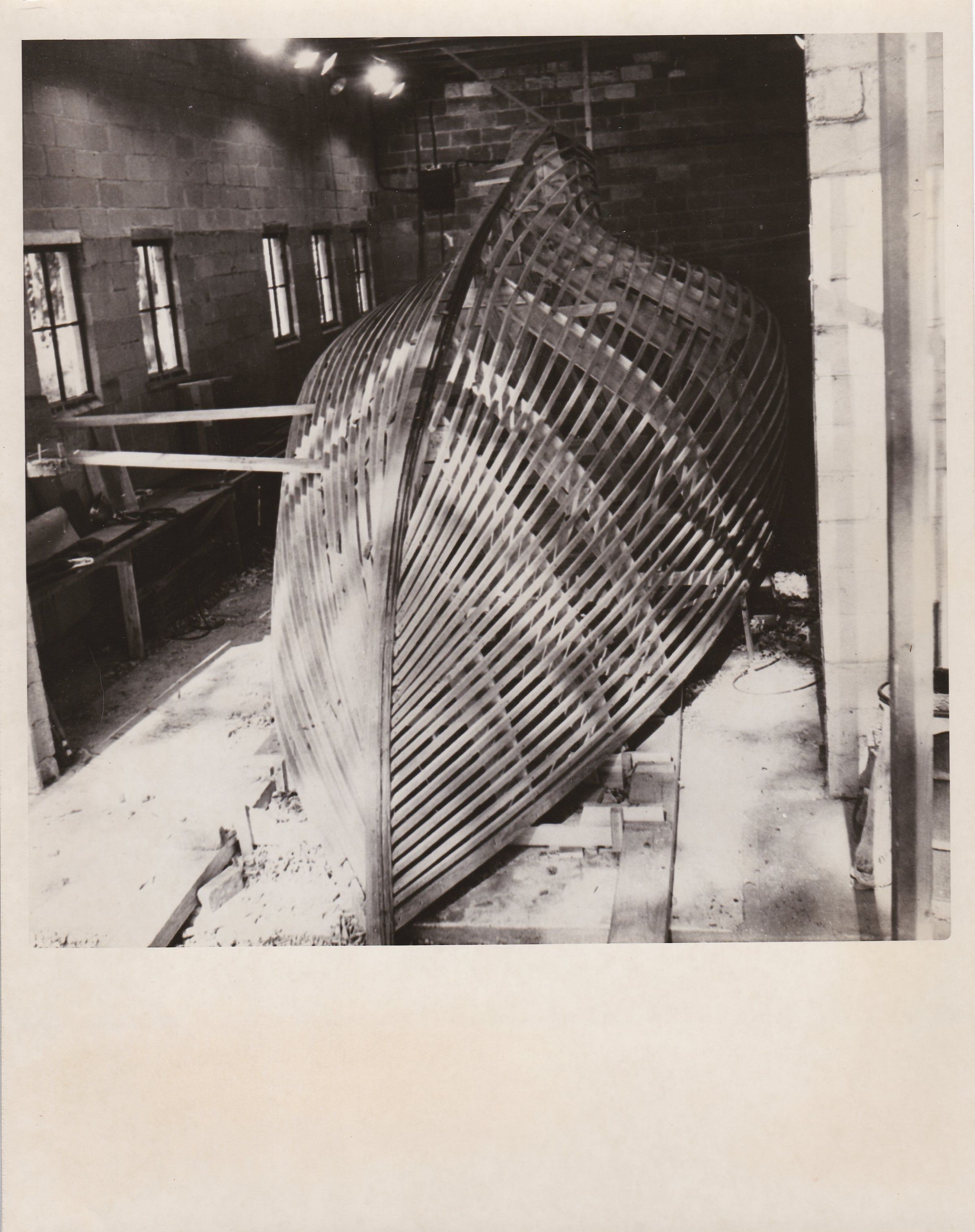 The frame of the form-- over which was laid 1/8" mahogany veneer to complete the form or "mold" and this then was covered with a heavy laminate of fiberglas fabric and polyester resin.Collection