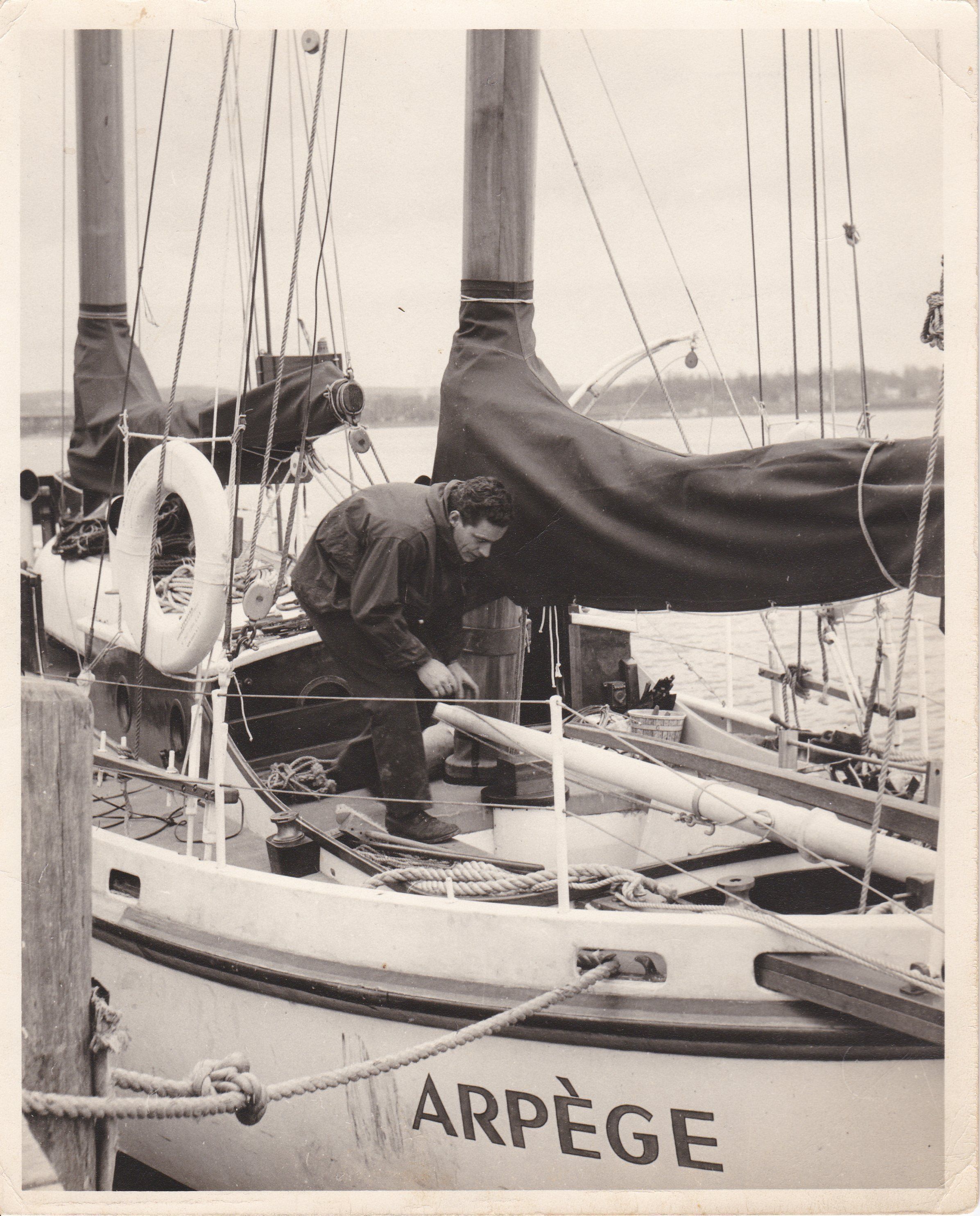 Jean Filloux on board the Arpege looking down