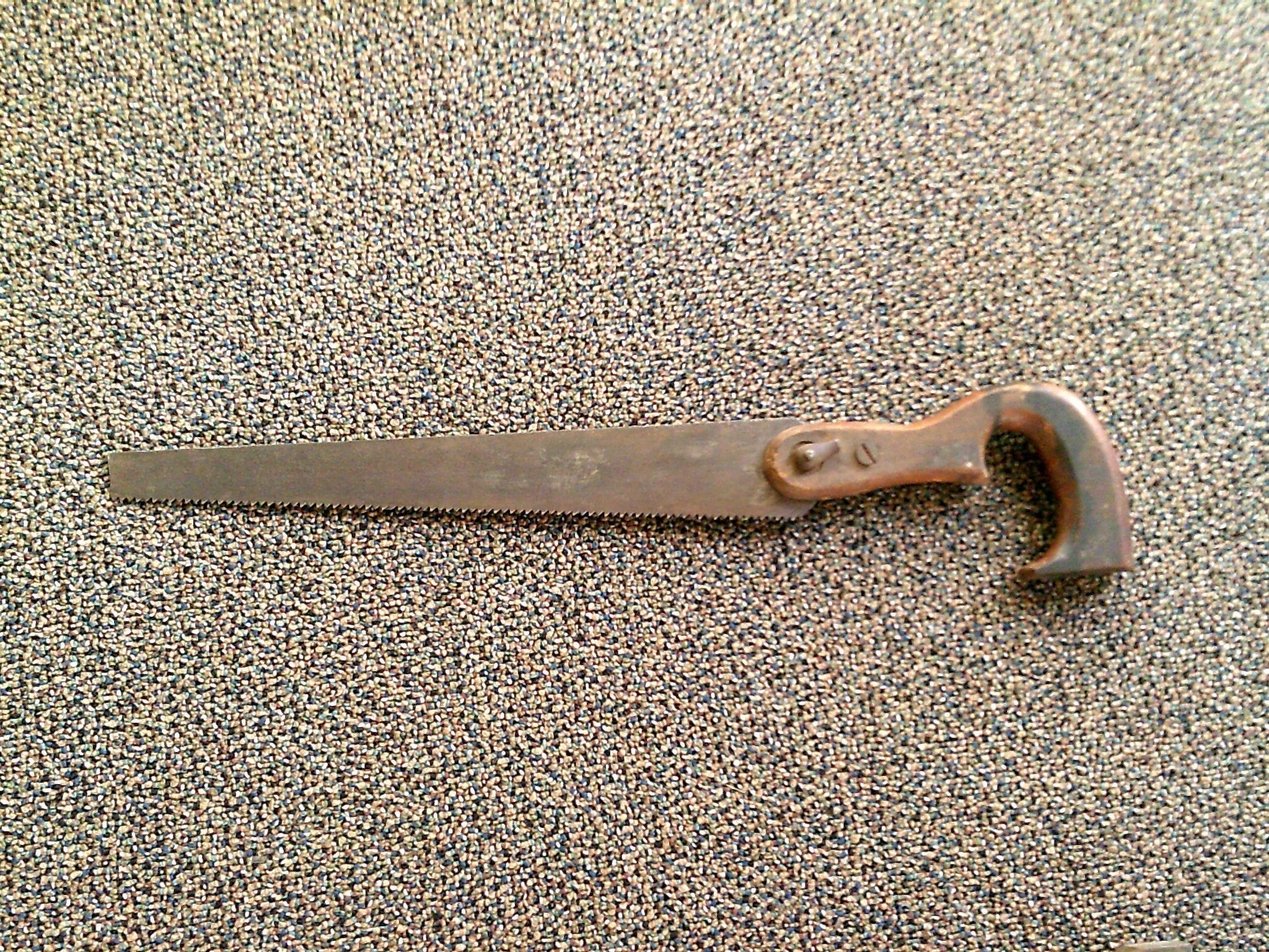 hand saw probably used to cut the wood for building boats and other things such as furniture. a saw used with one hand for cutting wood