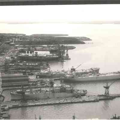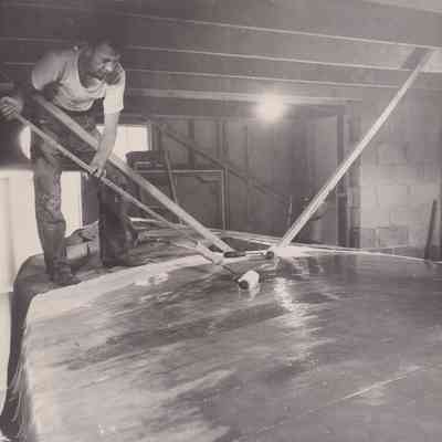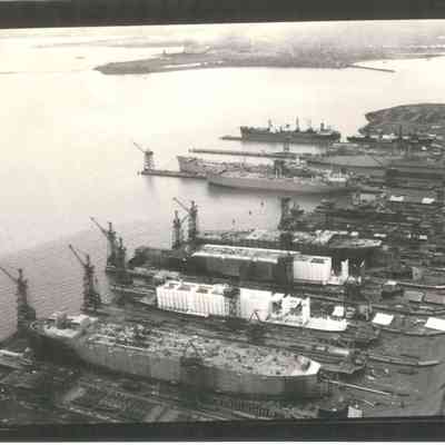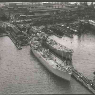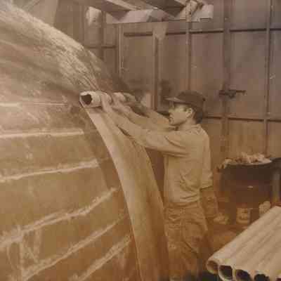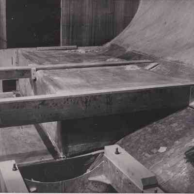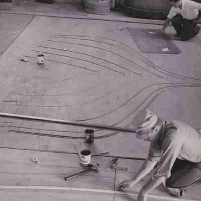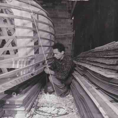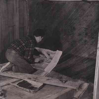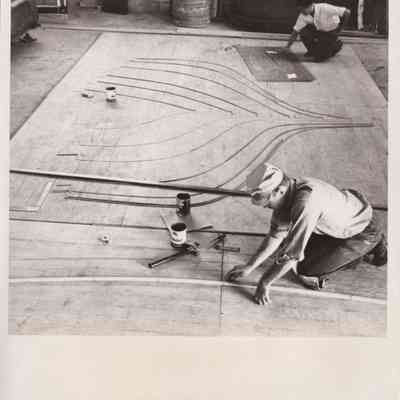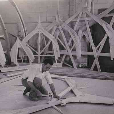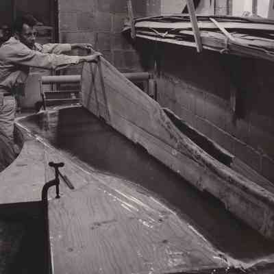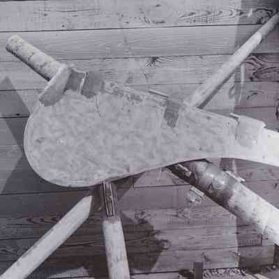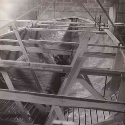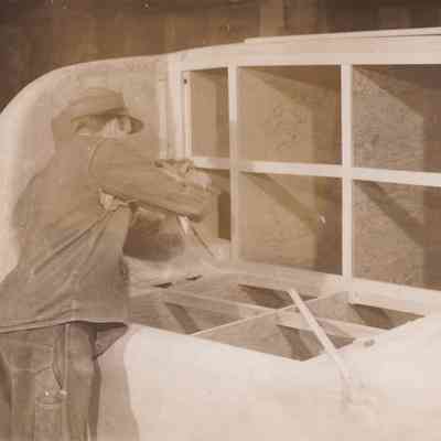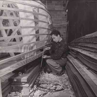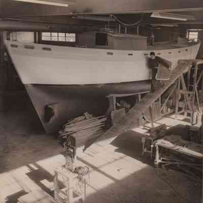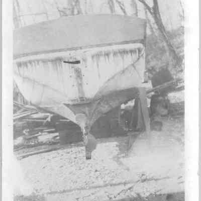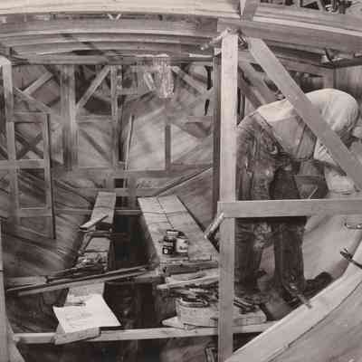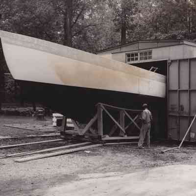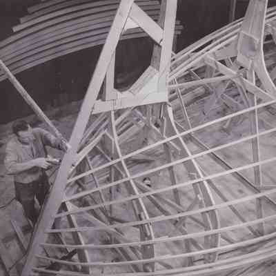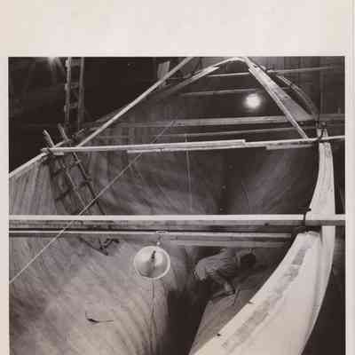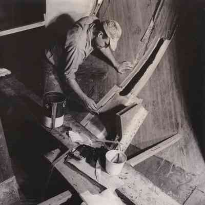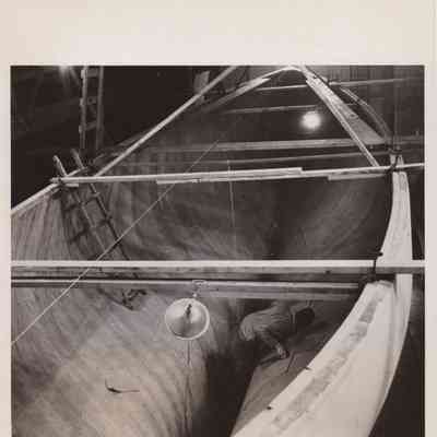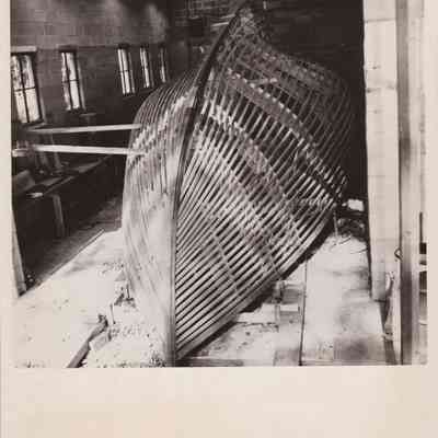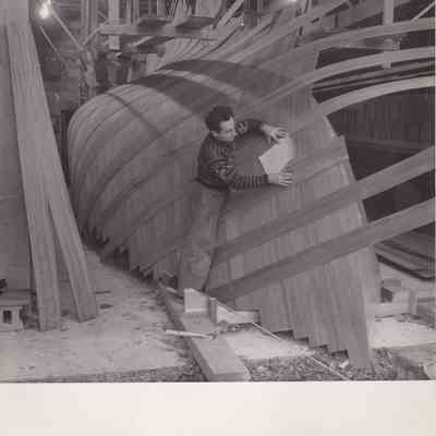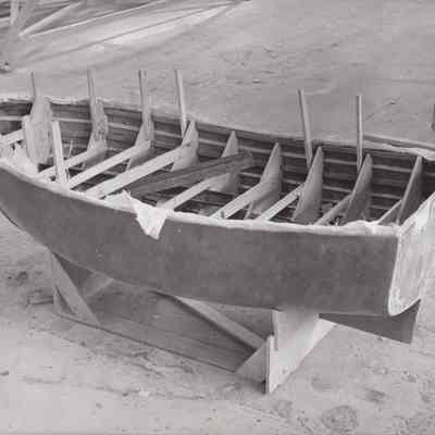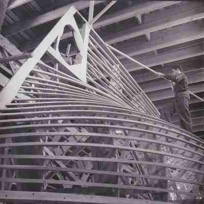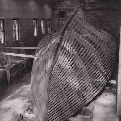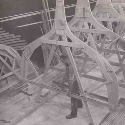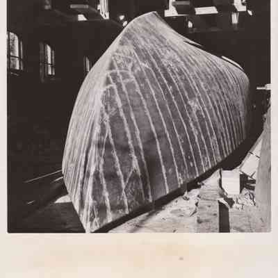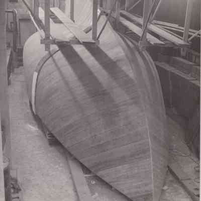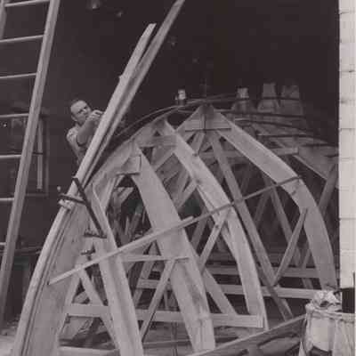 Three skipjacks under construction 1955, by B.M. Parks, Wingate, Maryland