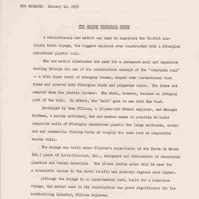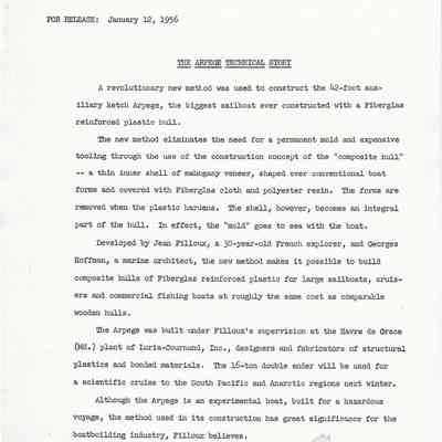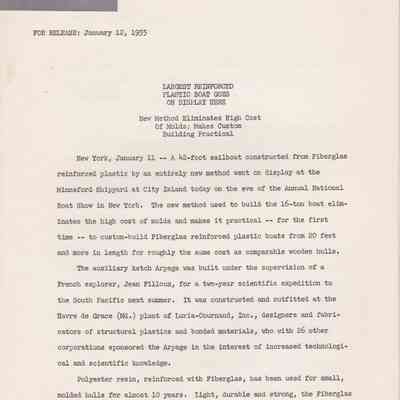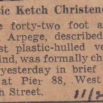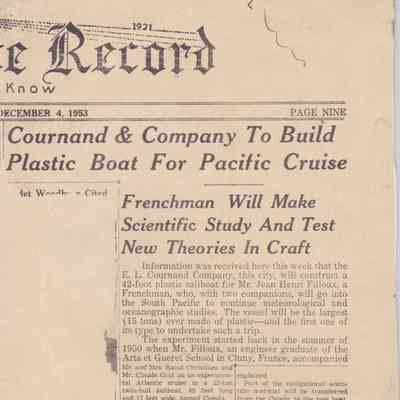 Cournand and company to build plastic voat for pacific cruise French man will make scientific study and test new theories in craft