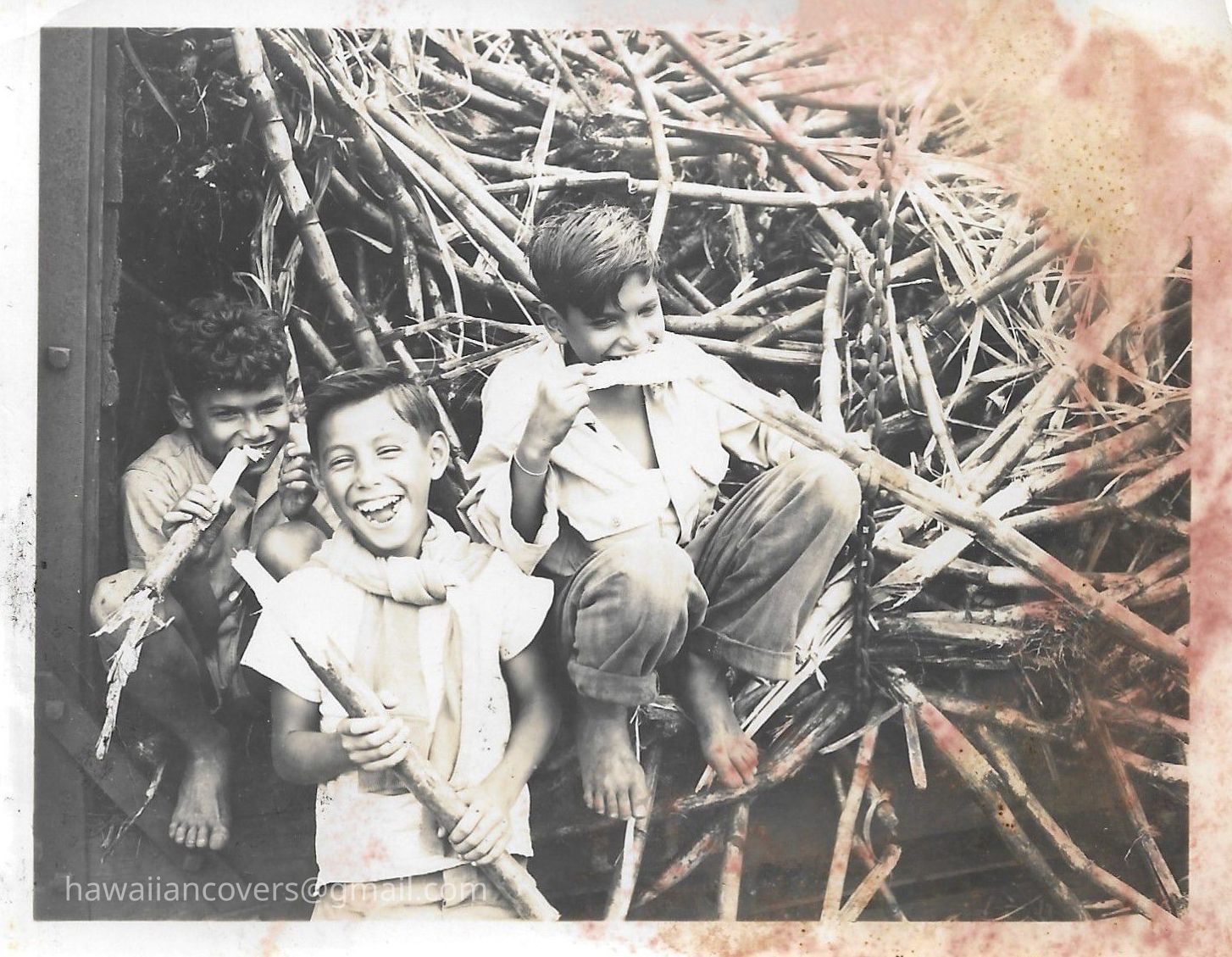 Local Boys Chewing on Harvested Raw Sugar Cane Photo Circa 1950's