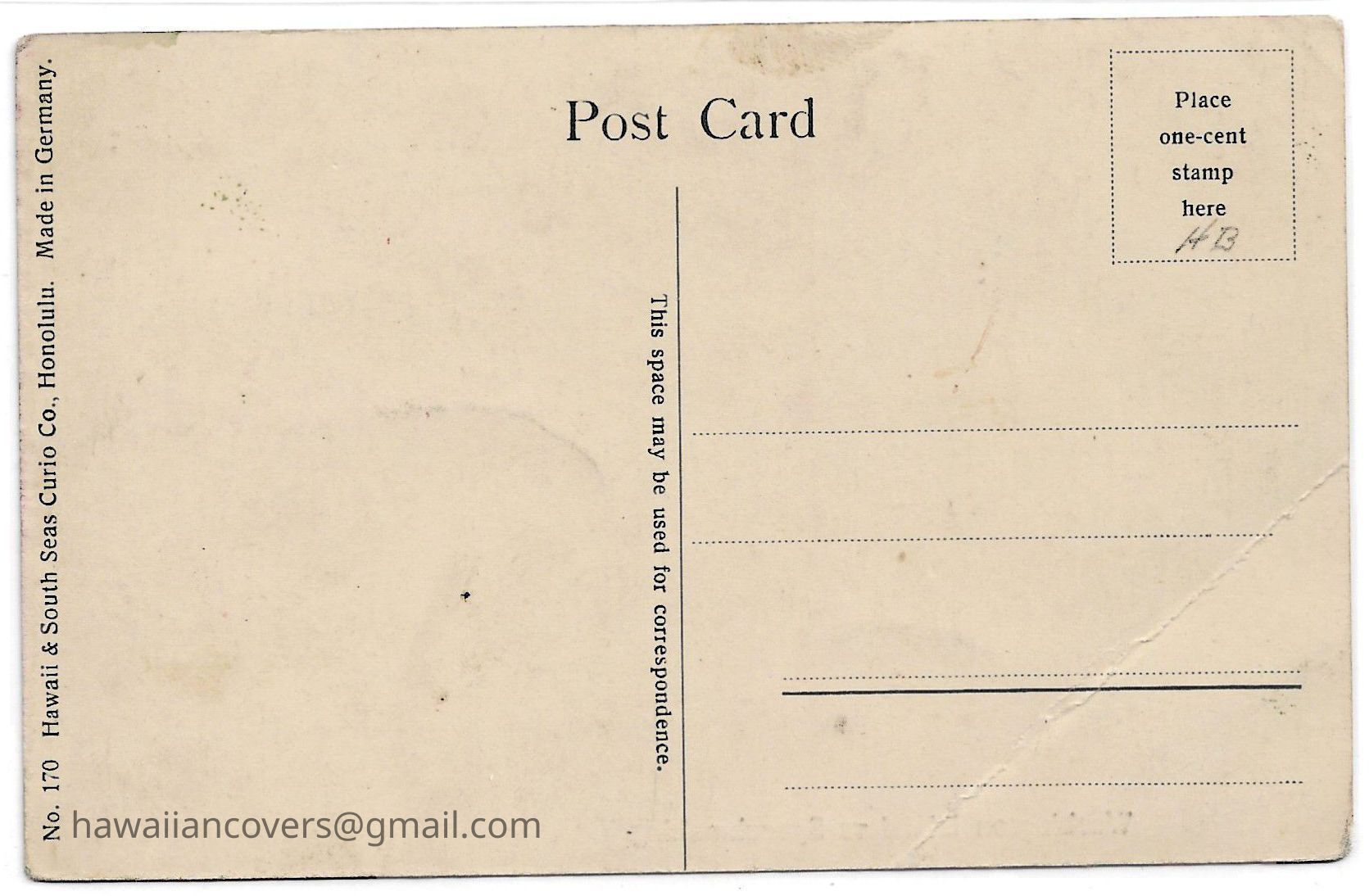 Entry made due to Hawaii based postcard maker "Hawaii and South Seas Curio Co., Honolulu"