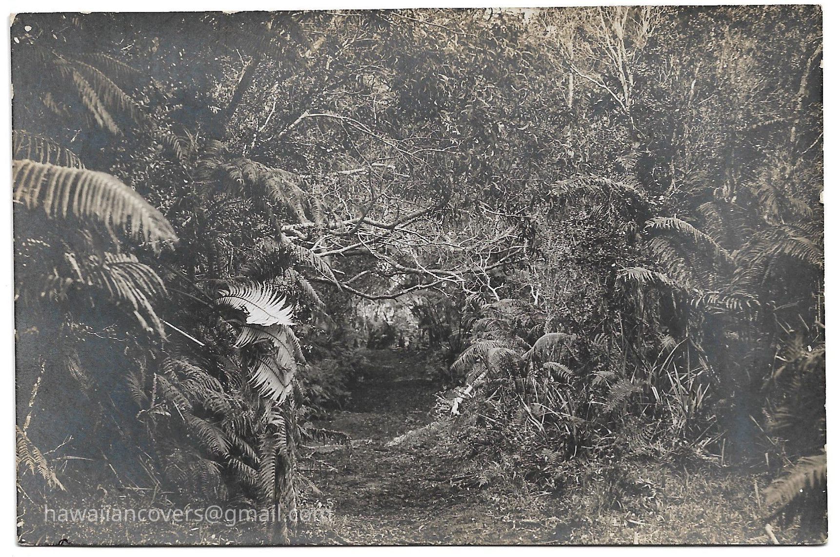 Original photograph, with bronzing sheen. Further research required to determine location, but location could be the path to Ainahau, Waikiki,Created By