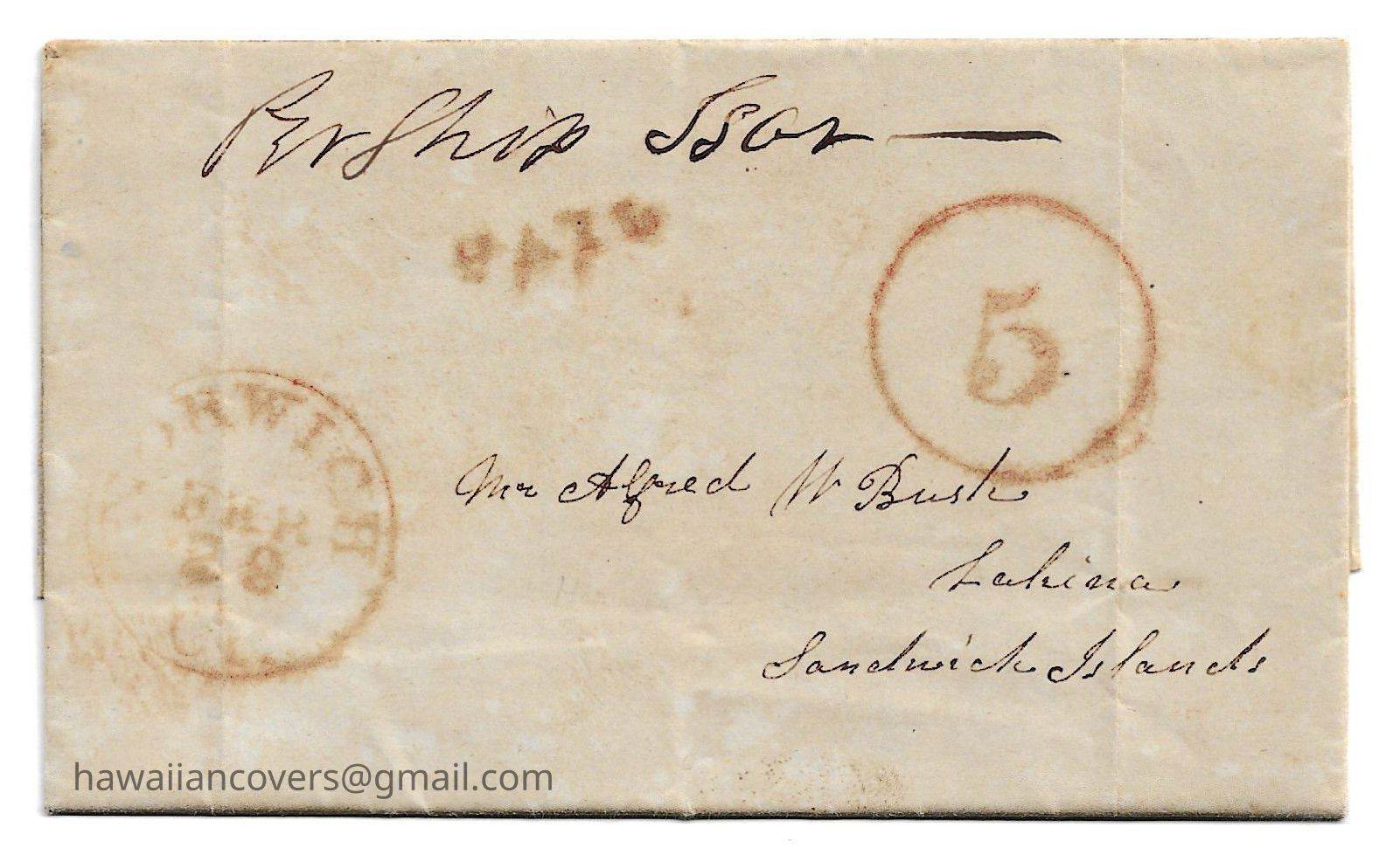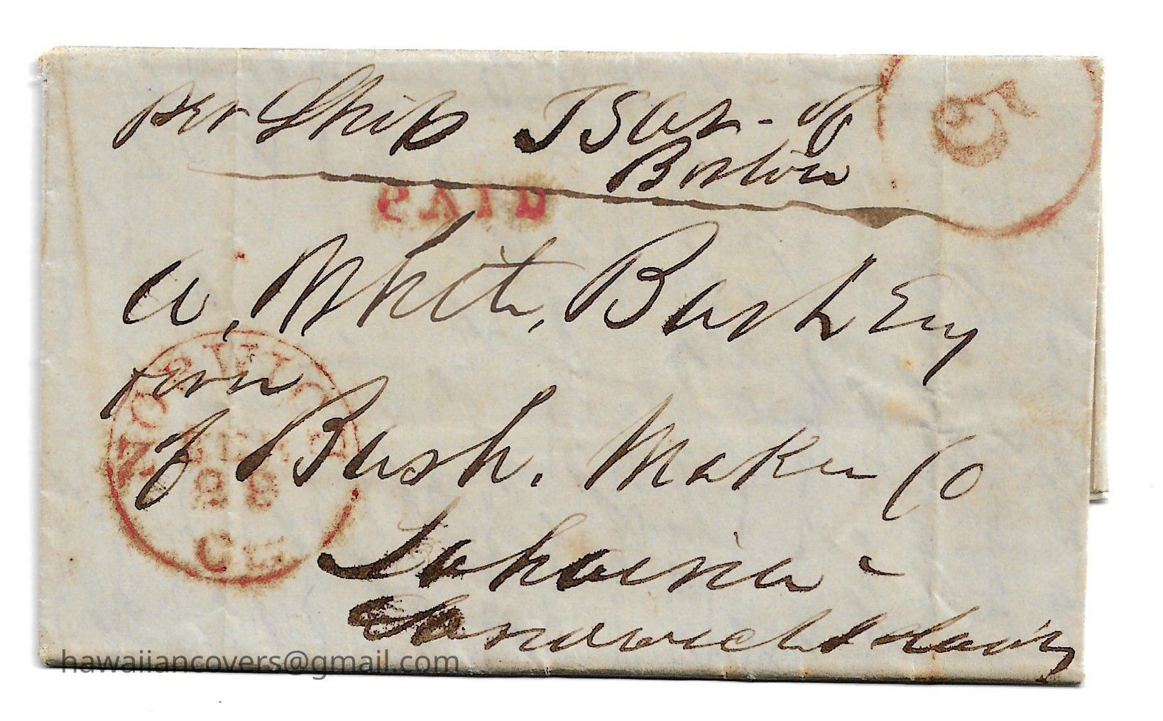 Folded Letter 29, Feb 1848 Norwich, via Boston, Rio De Janeiro, and Tahiti to Lahaina