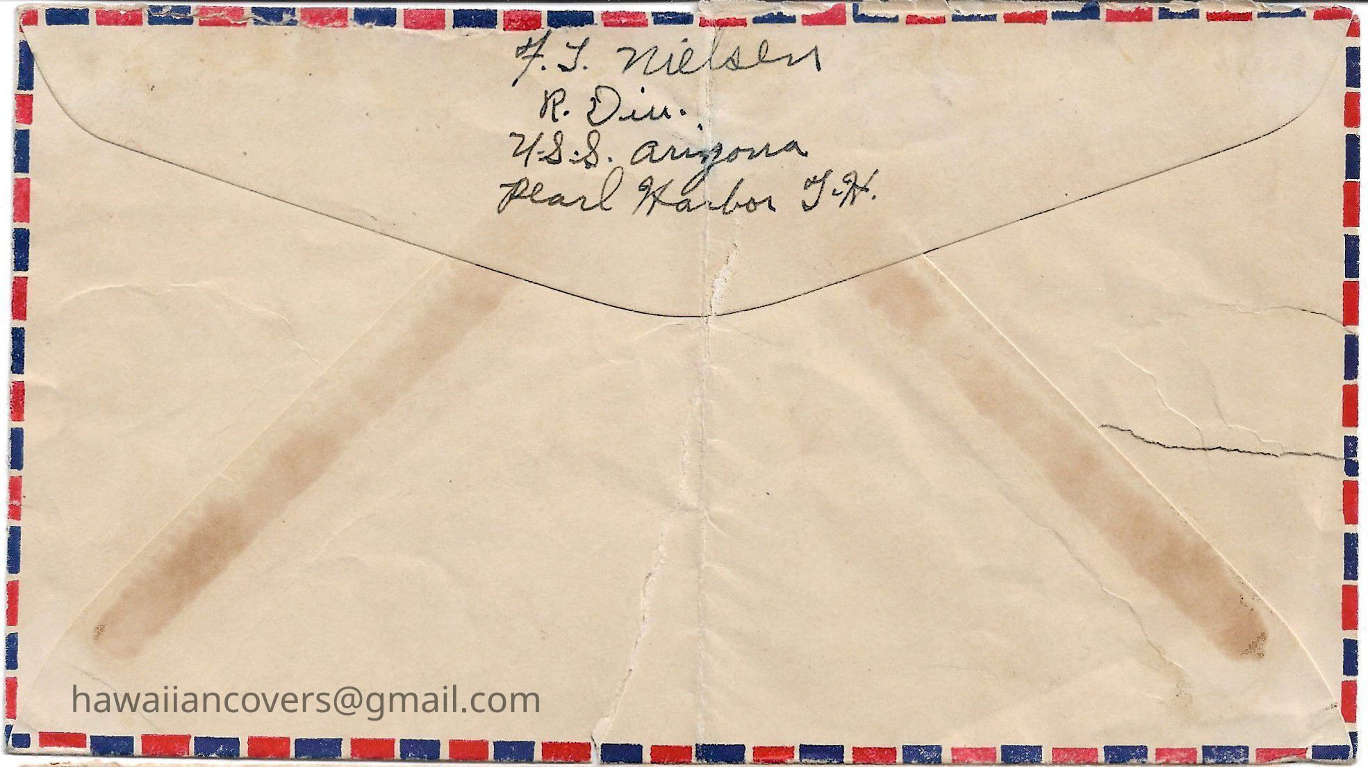 Cover sent by Floyd T Nielsen aboard the USS Arizona. CM3c (Carpenter's Mate 3rd Class)