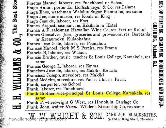 According to the 1890 Polk Directory, page 172, Brother Frank was the Vice-Principal of St Louis College.