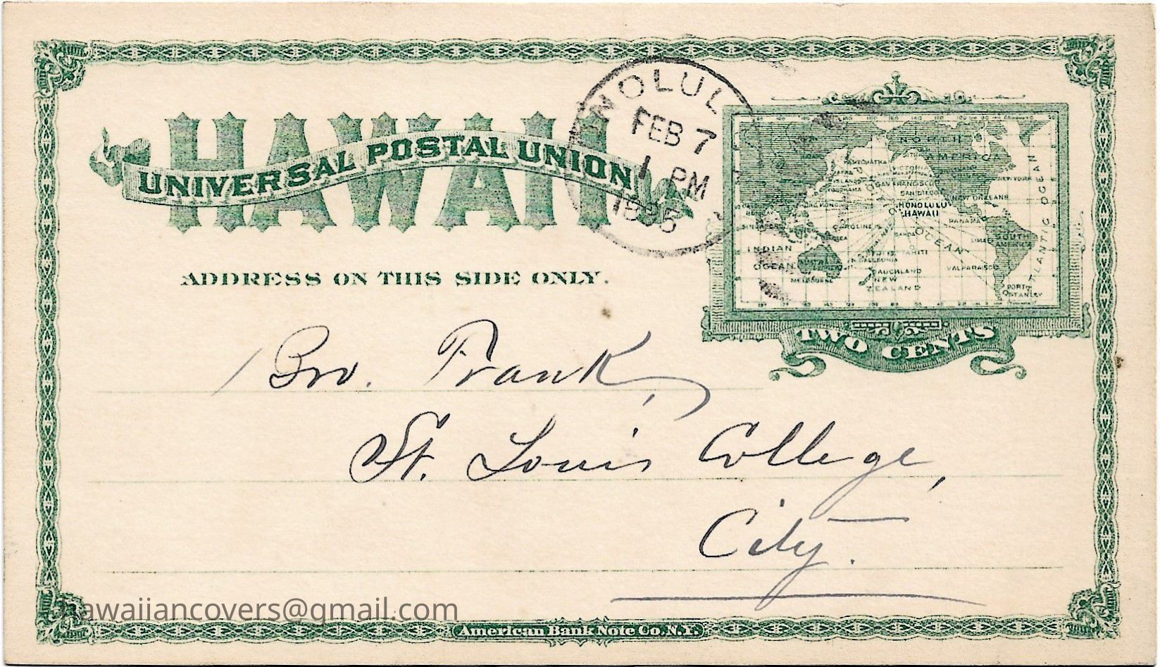 Card addressed to Bro Frank, St. Louis College, Postmarked Feb 7, 1895.